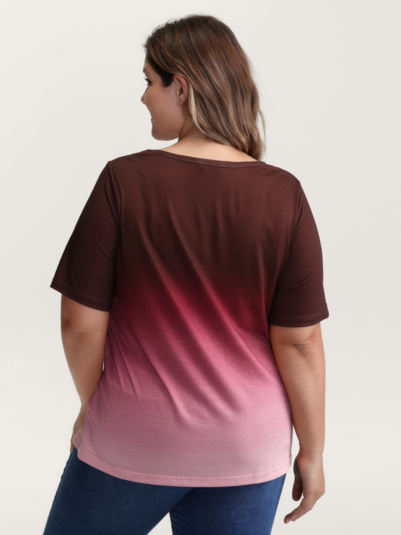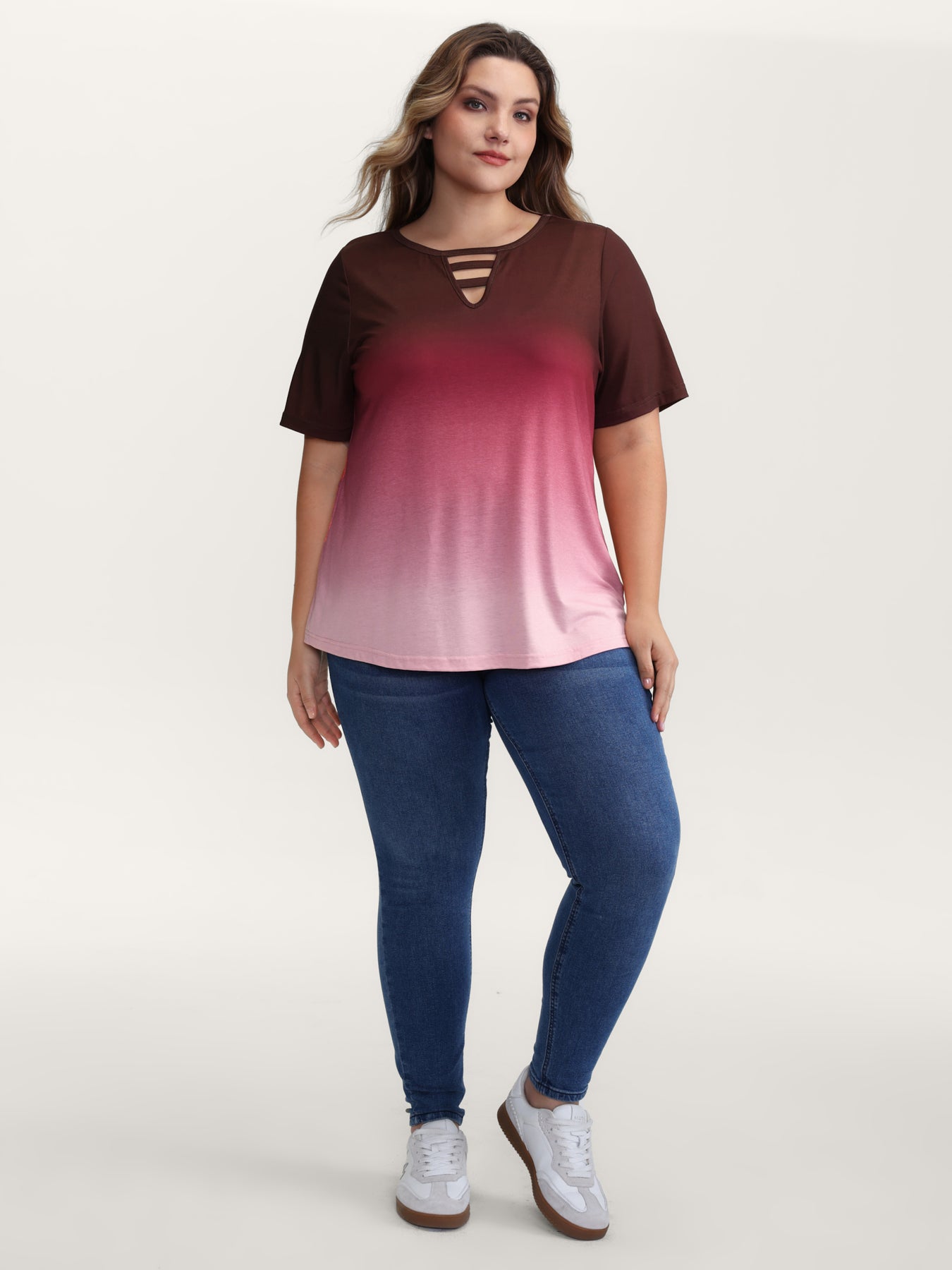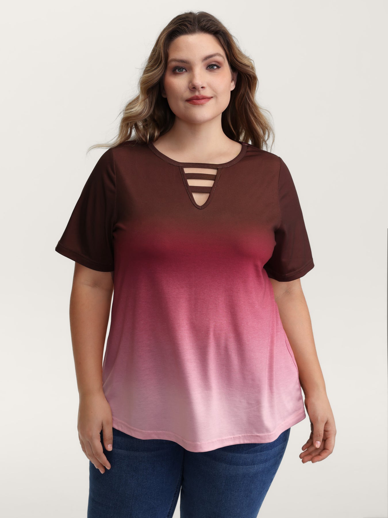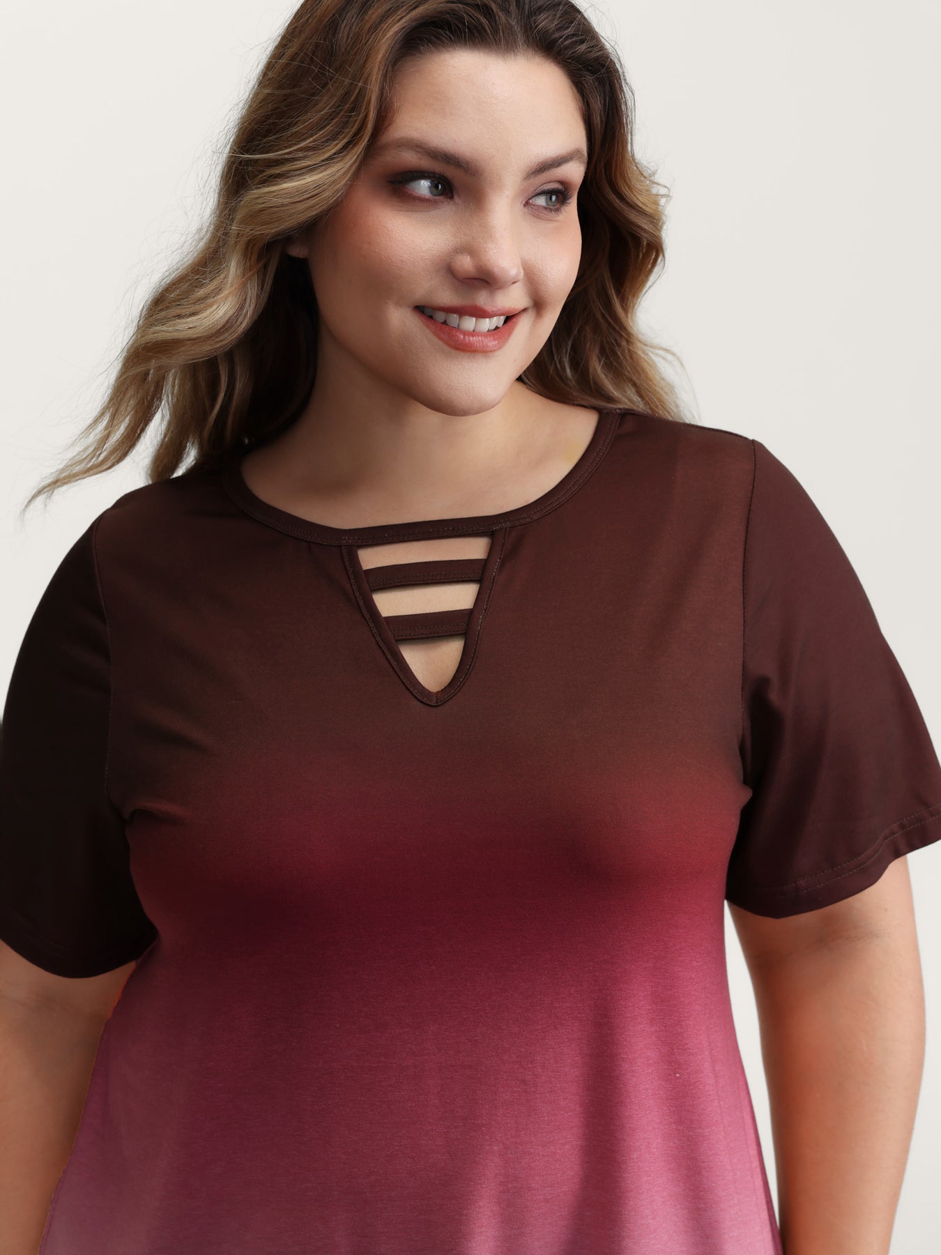 Tie-Dye Blend Neck Cut-Out T-Shirt