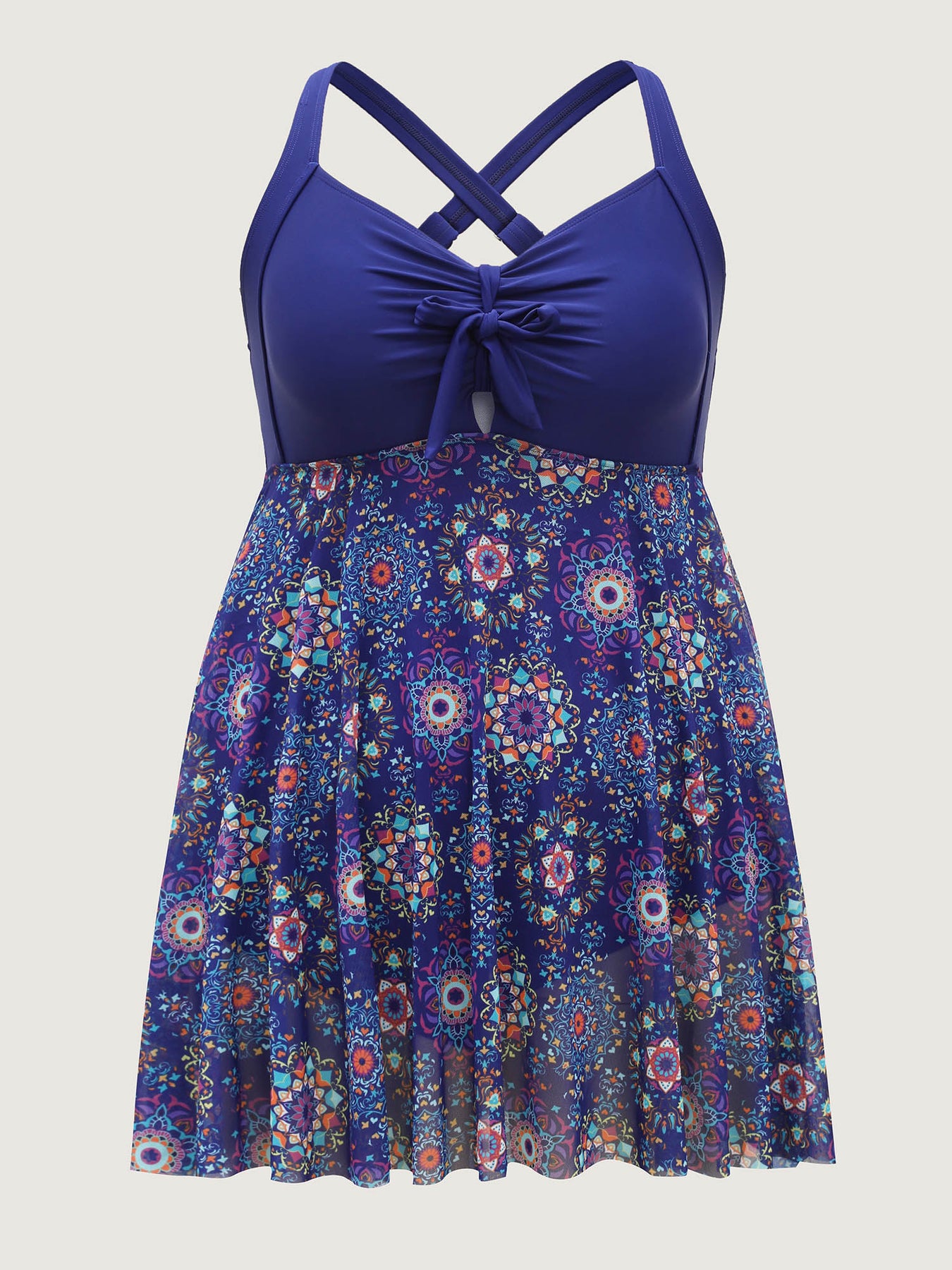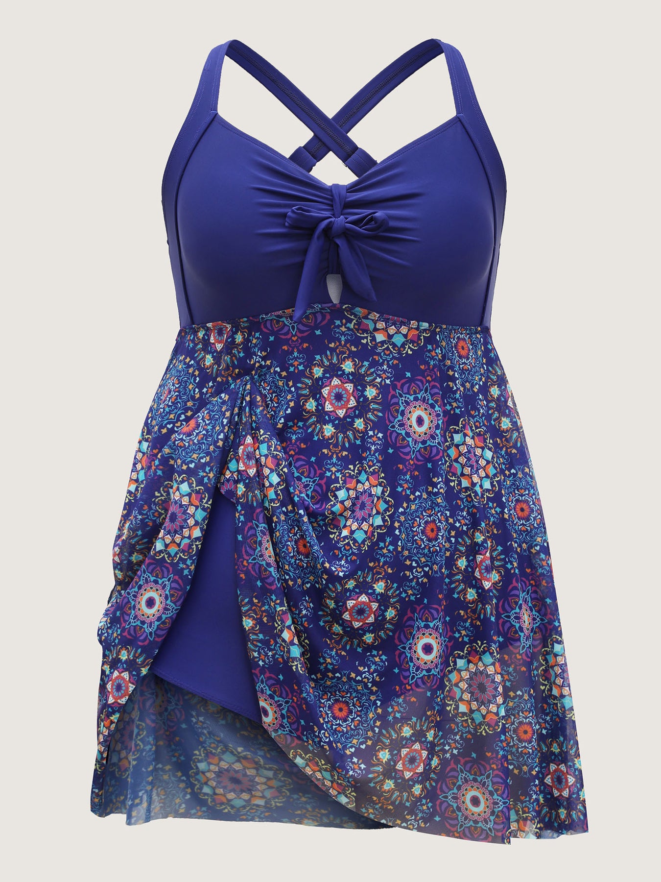 Tie-Front Sheer Boho Print Swim Dress