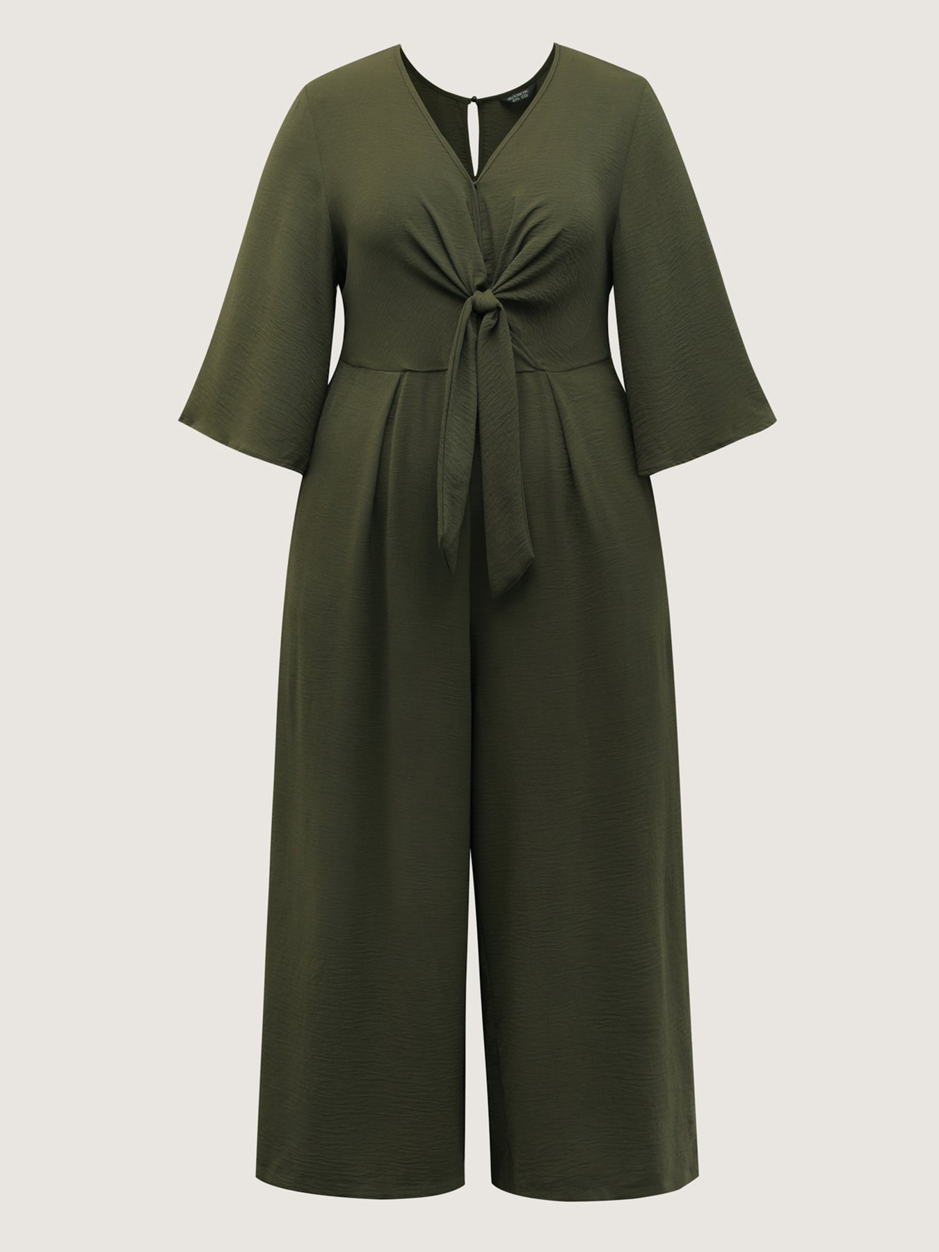 Tie-Front Three Quarter Sleeve Jumpsuit