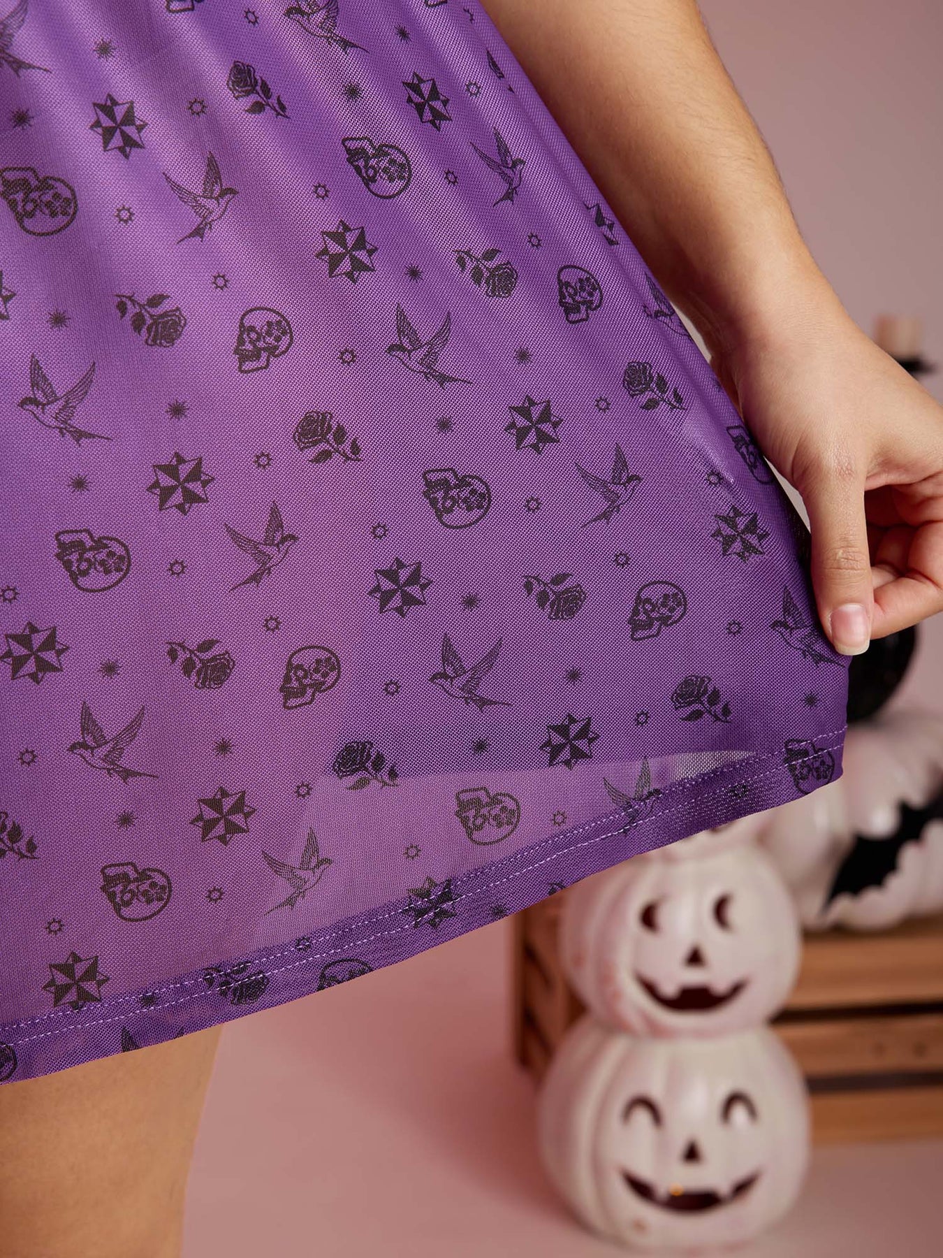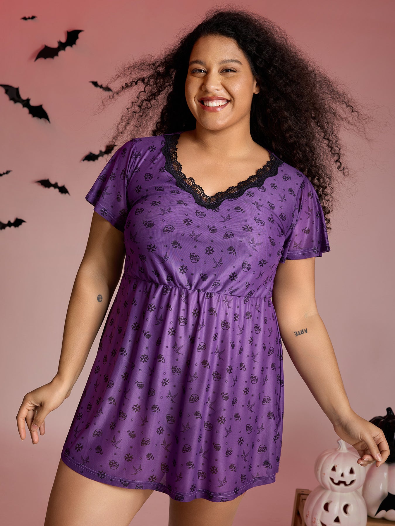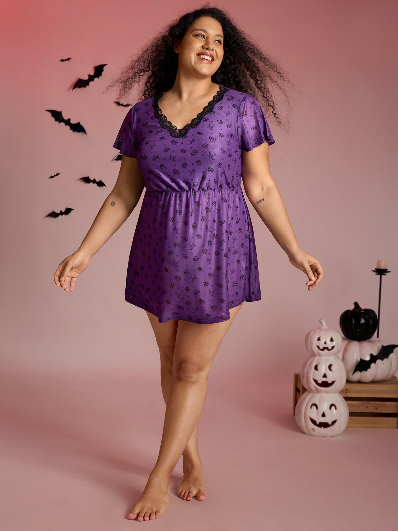 Timeless Halloween Print Stretchy Waist Sleep Dress