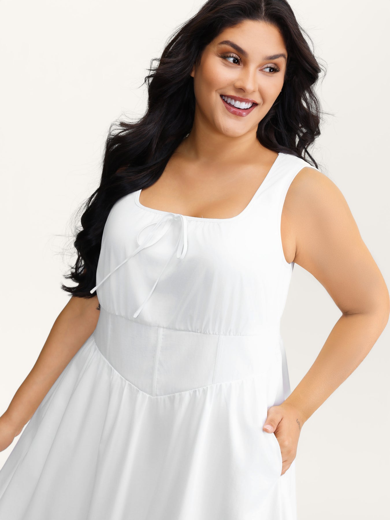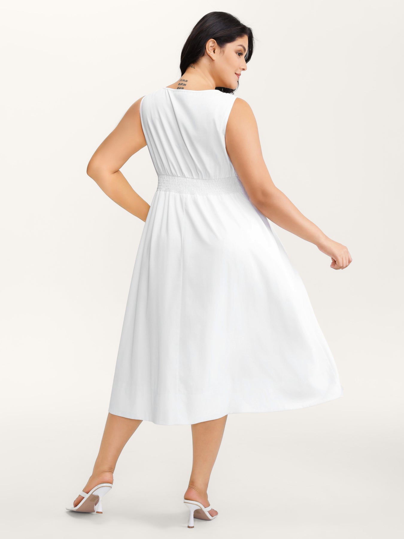Triangular Cinched-Waist A-Line Midi Dress