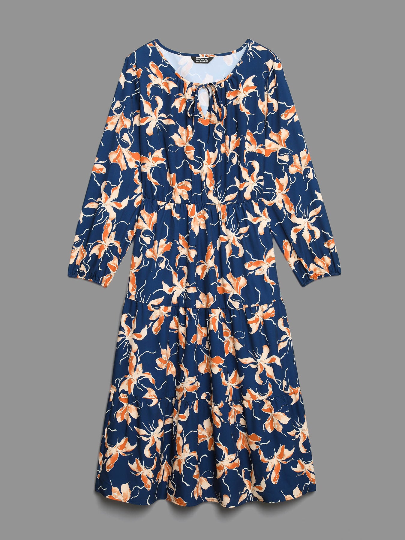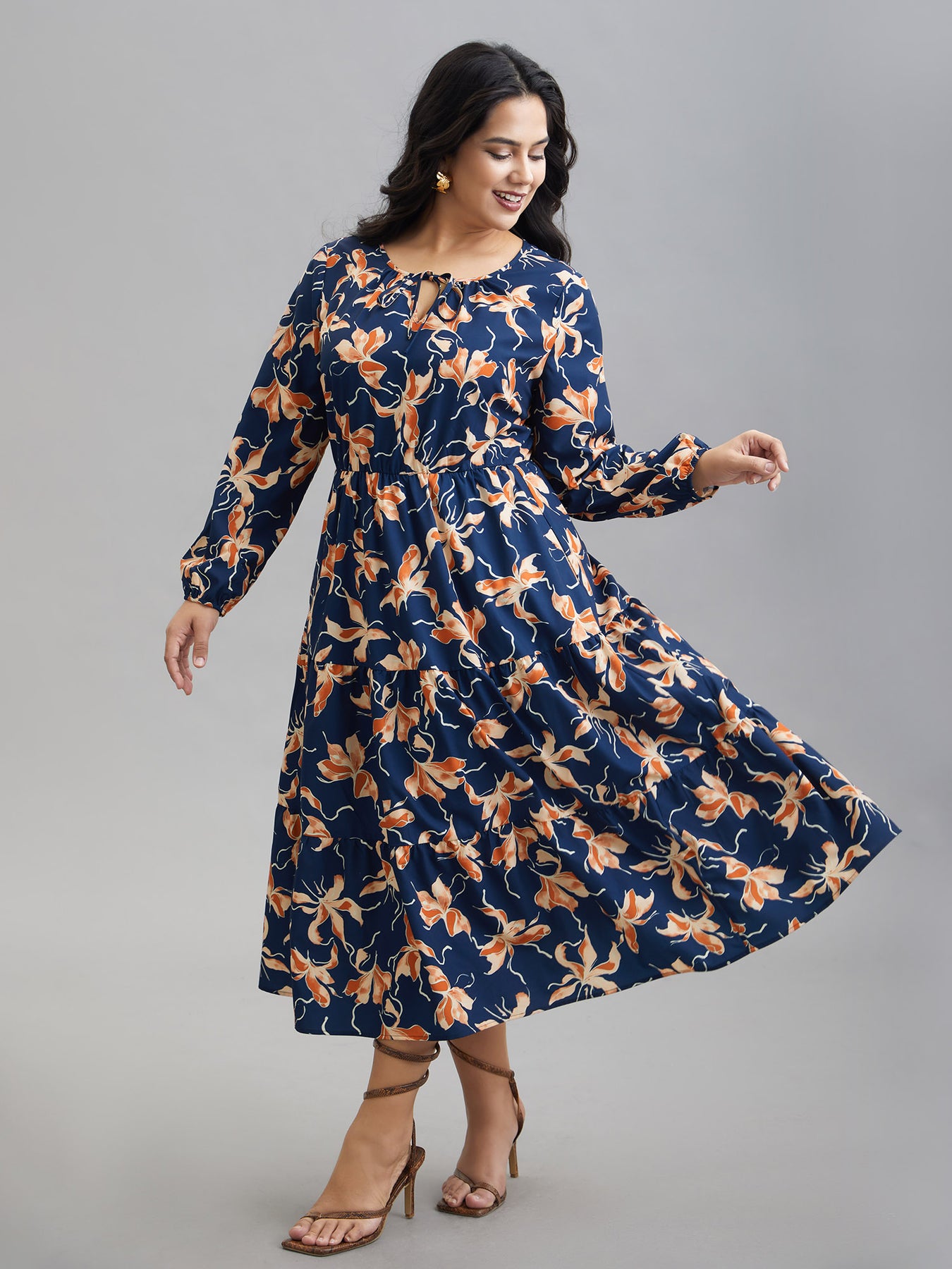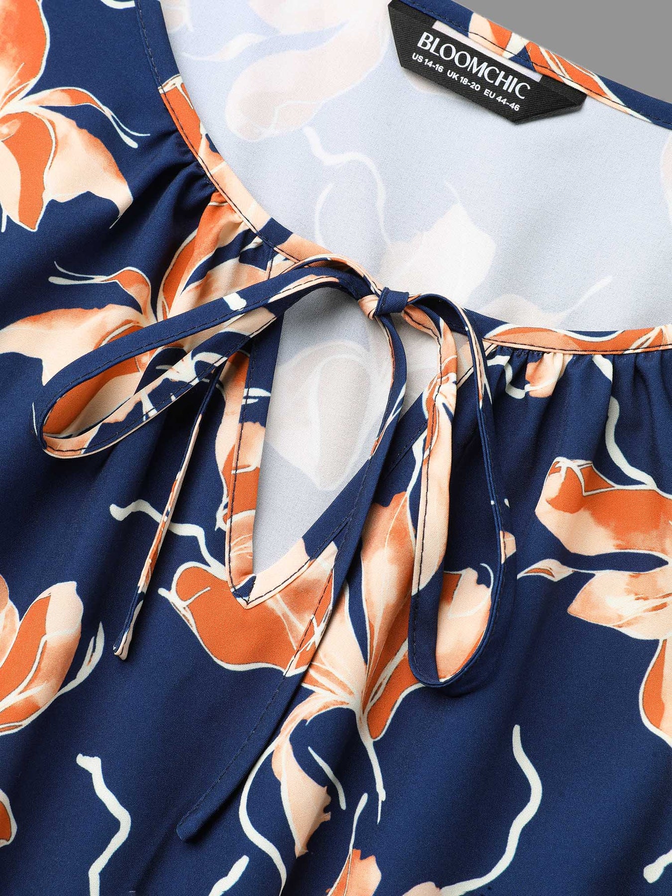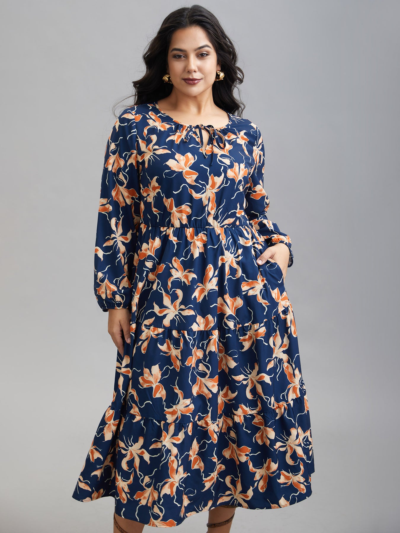 Tropical Flower Print Pockets Waist-Tie Midi Dress