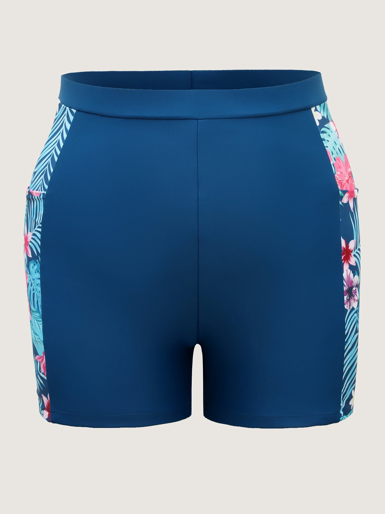Tropical Print Side Pockets Contrast Swim Bottoms