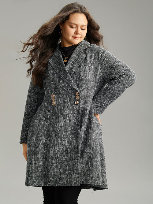 Tweed Double Breasted Pocket Lapel Collar Coat
