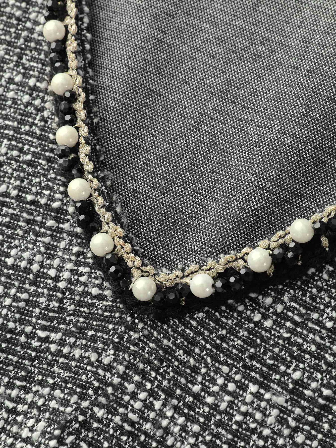 Tweed Pearl Collar Semi-Sheer Midi Dress