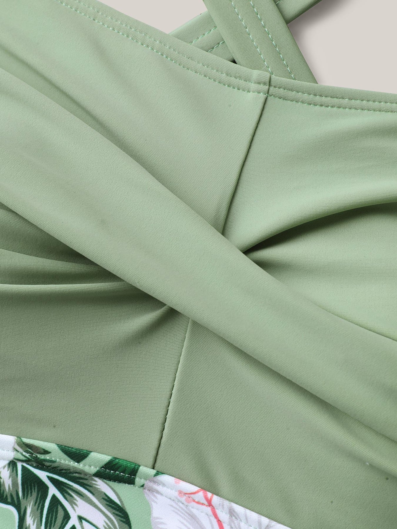 Twist-Front Floral Spliced One-Piece Swimsuit