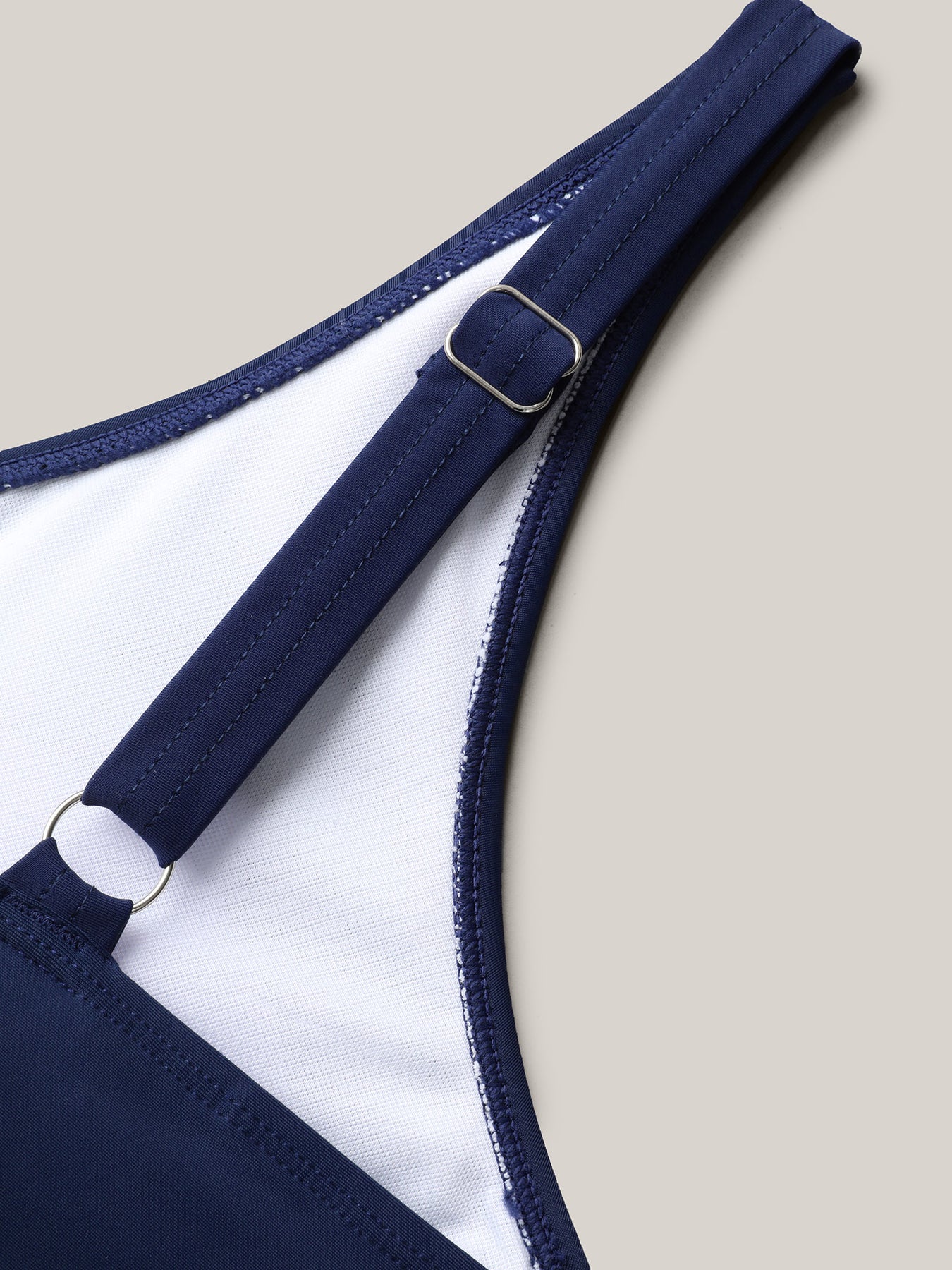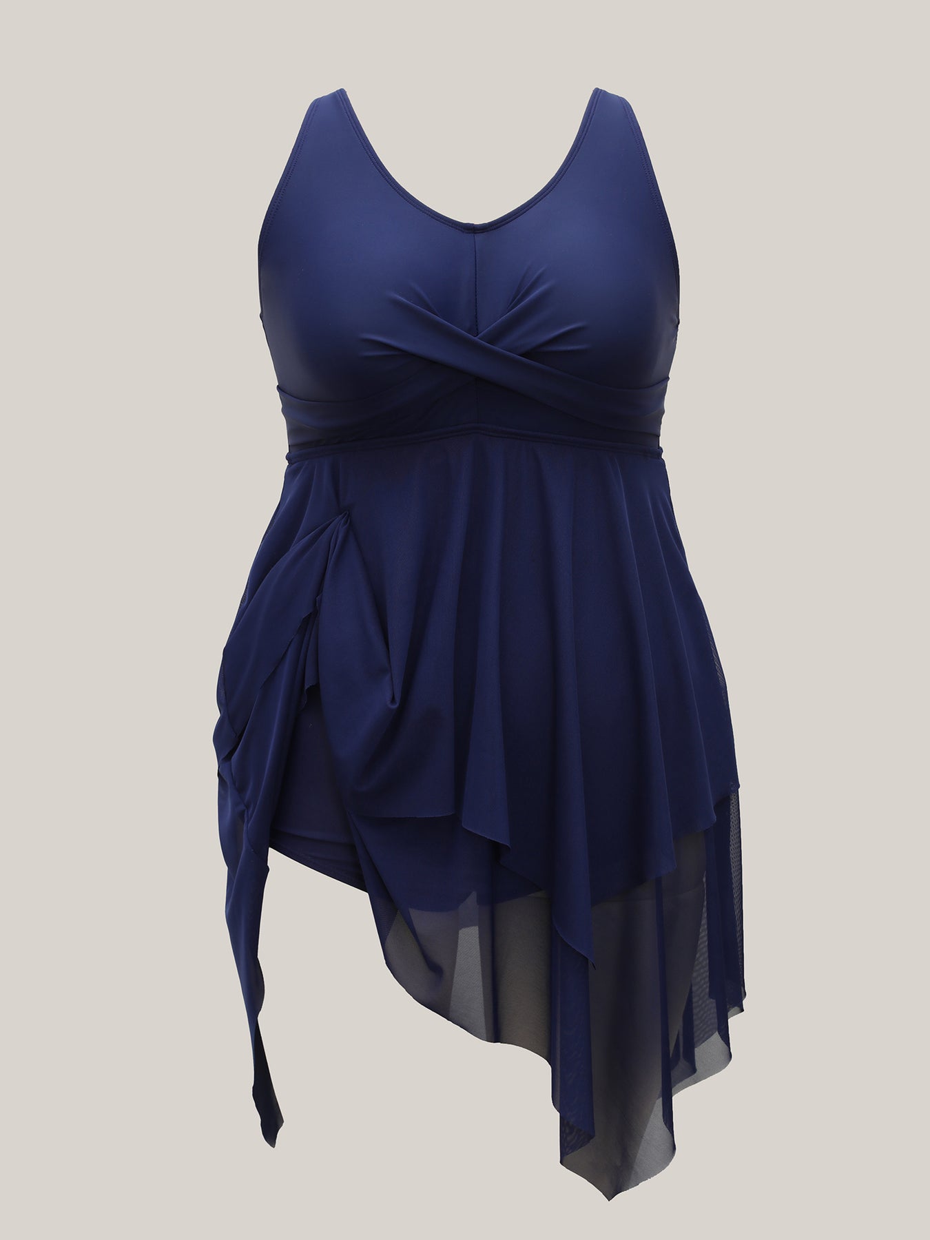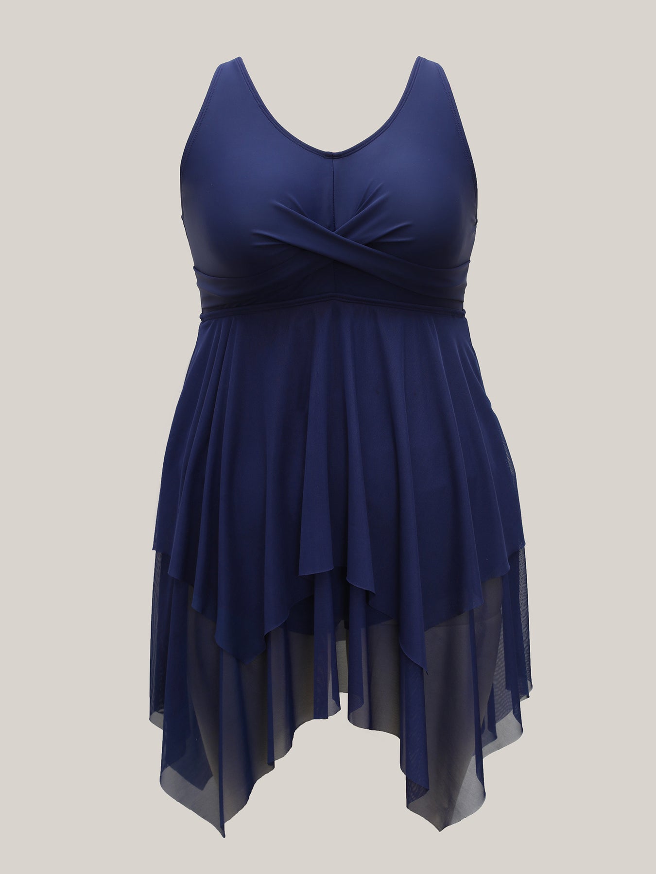 Twist Front Hi-Low Hem Sheer Layered Swim Dress