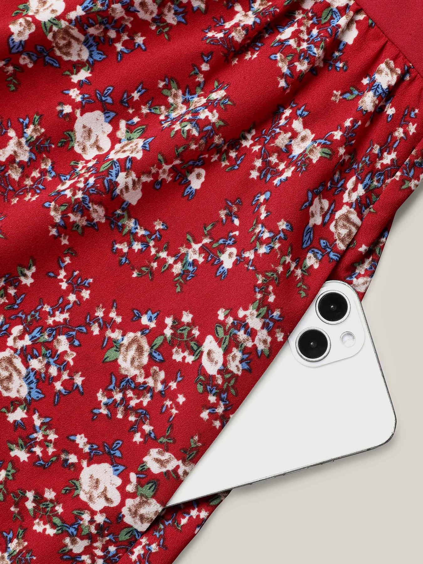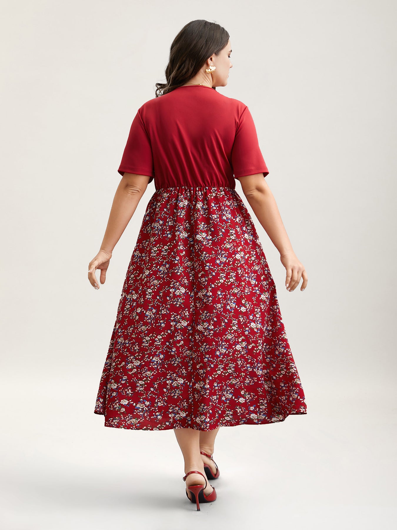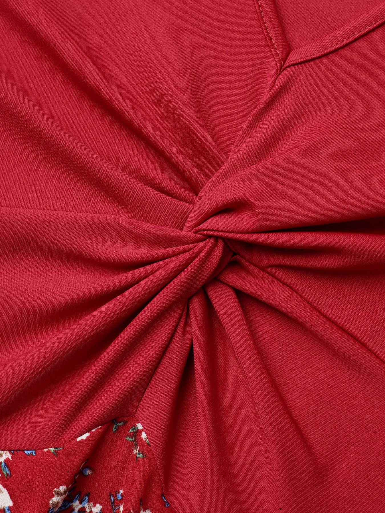 Twist-Front V-Neck Stretchy Waist Midi Dress
