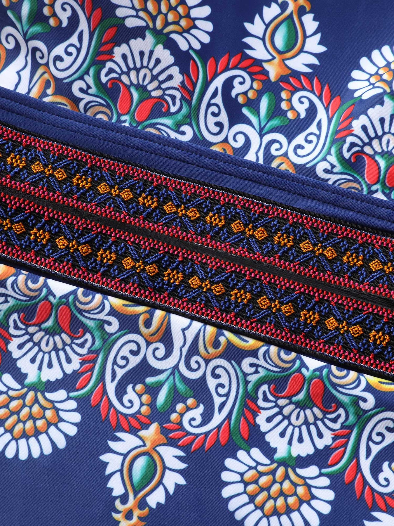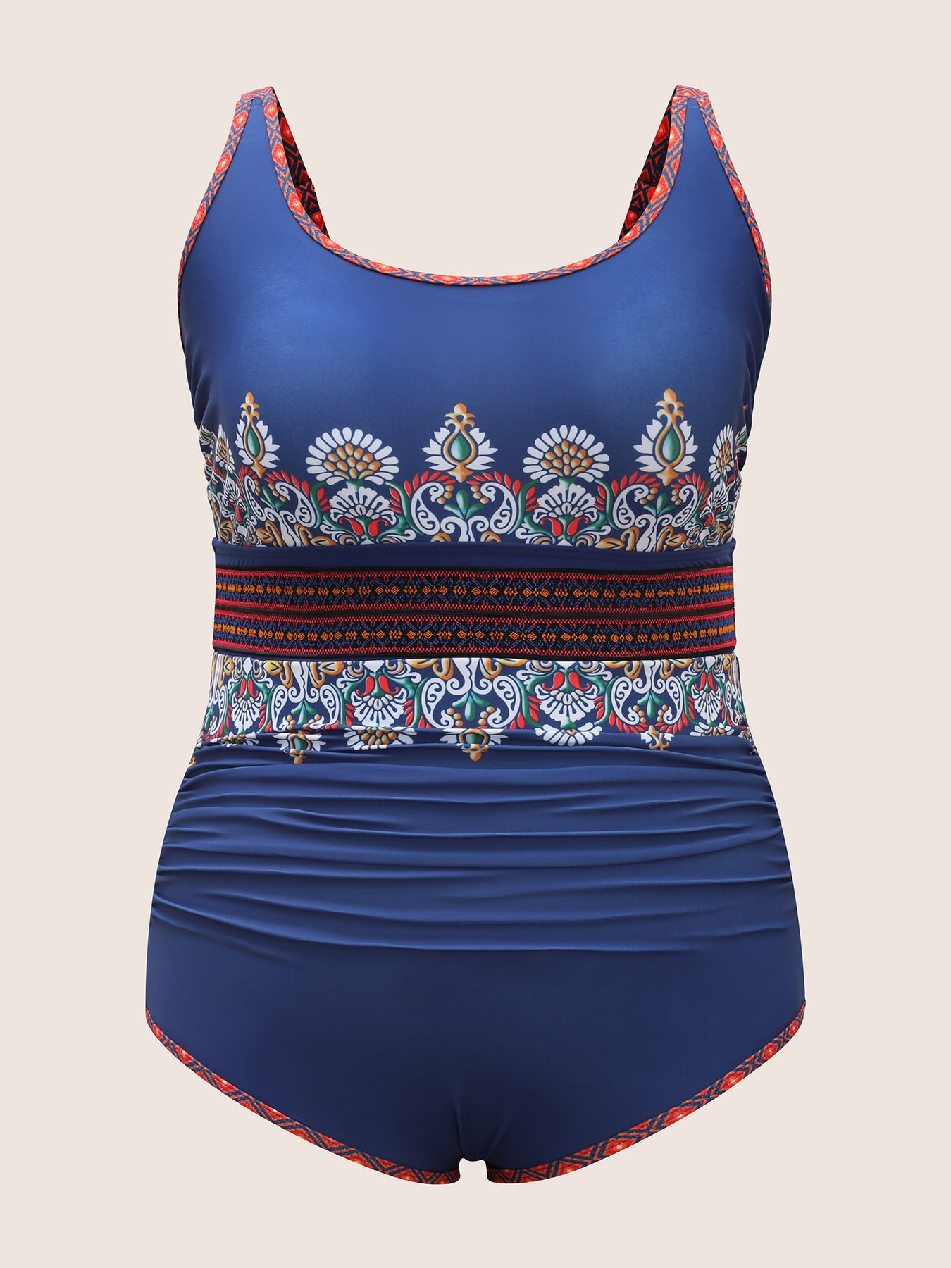 U Neck Bandana Contrast Webbing One Piece Swimsuit