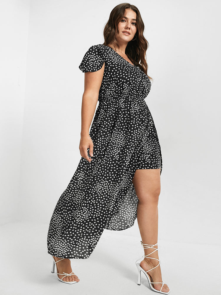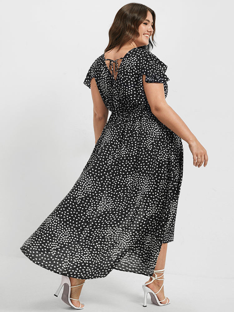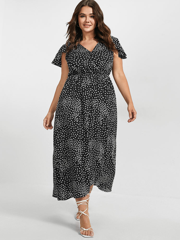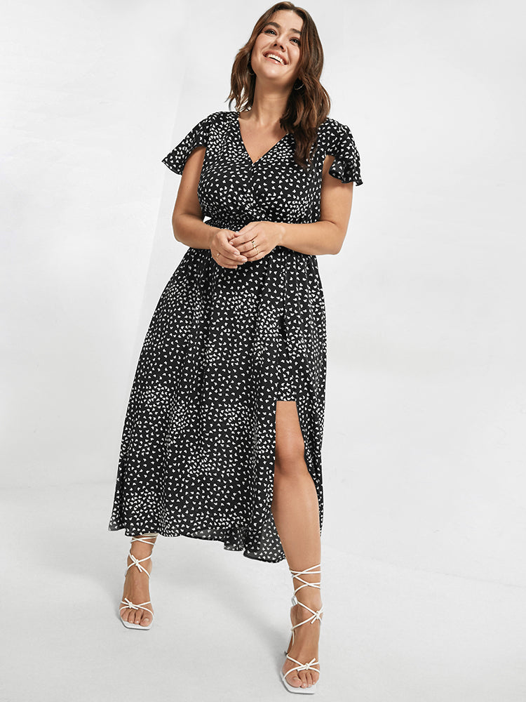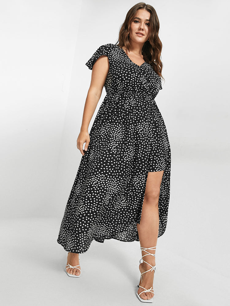 V Neck Butterfly Pattern Split Dress