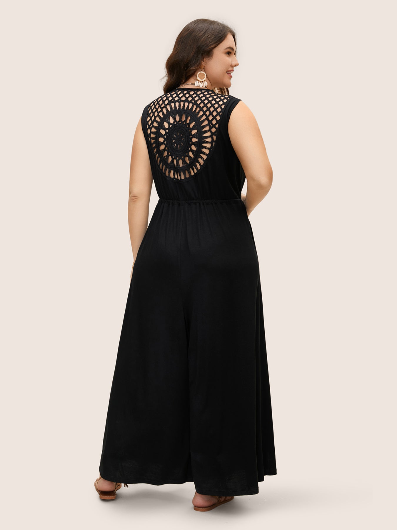V Neck Crocheted Cut Out Jumpsuit