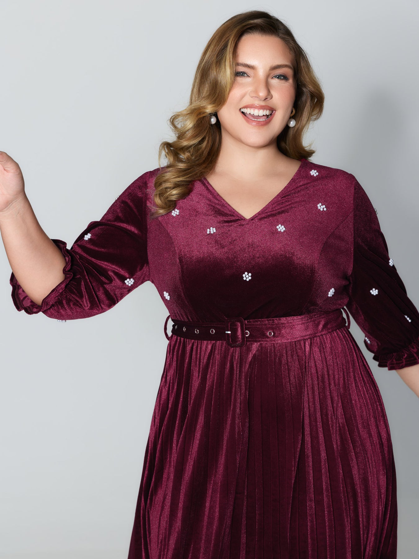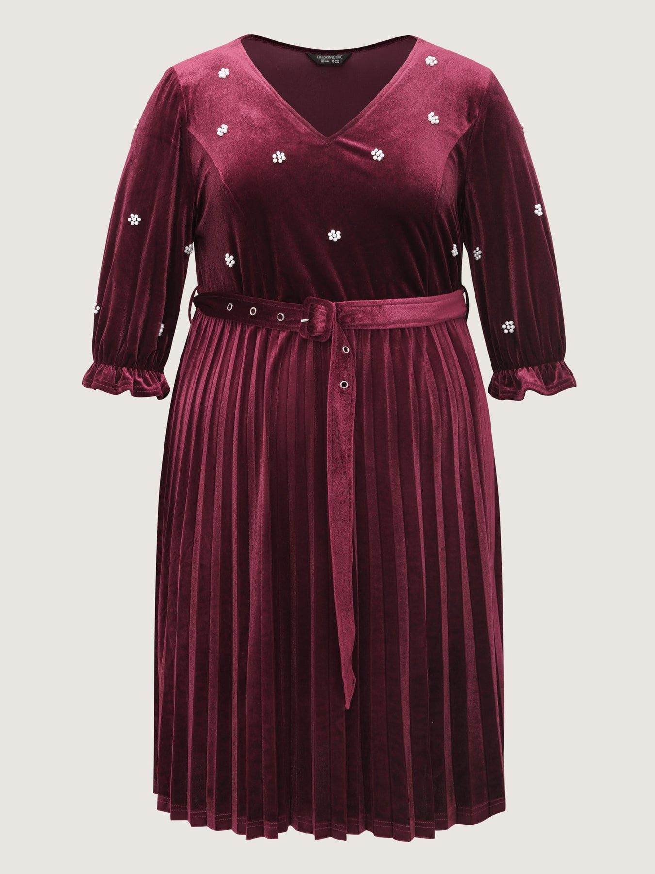Velvet Beads Pleated Skirt Midi Dress