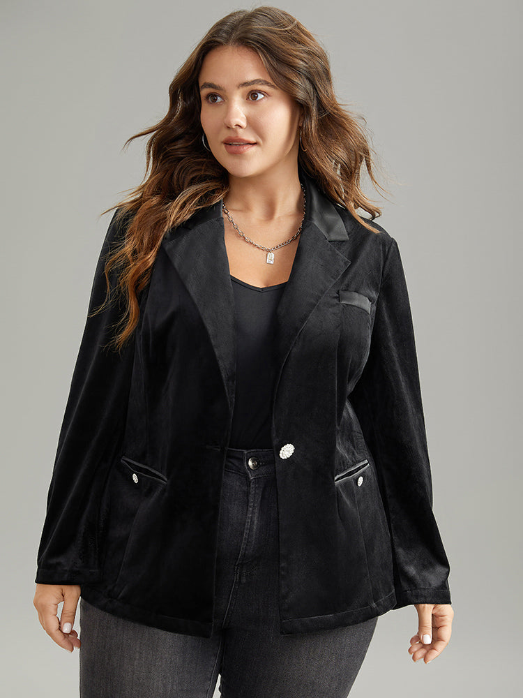 Velvet Buckle Detail Pocket Suit Collar Blazer