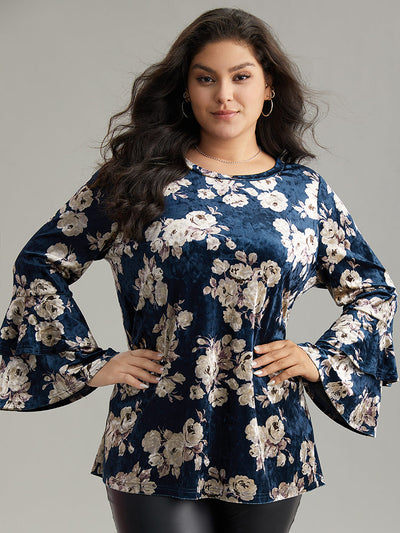 Velvet Floral Tiered Flounce Sleeve T-shirt