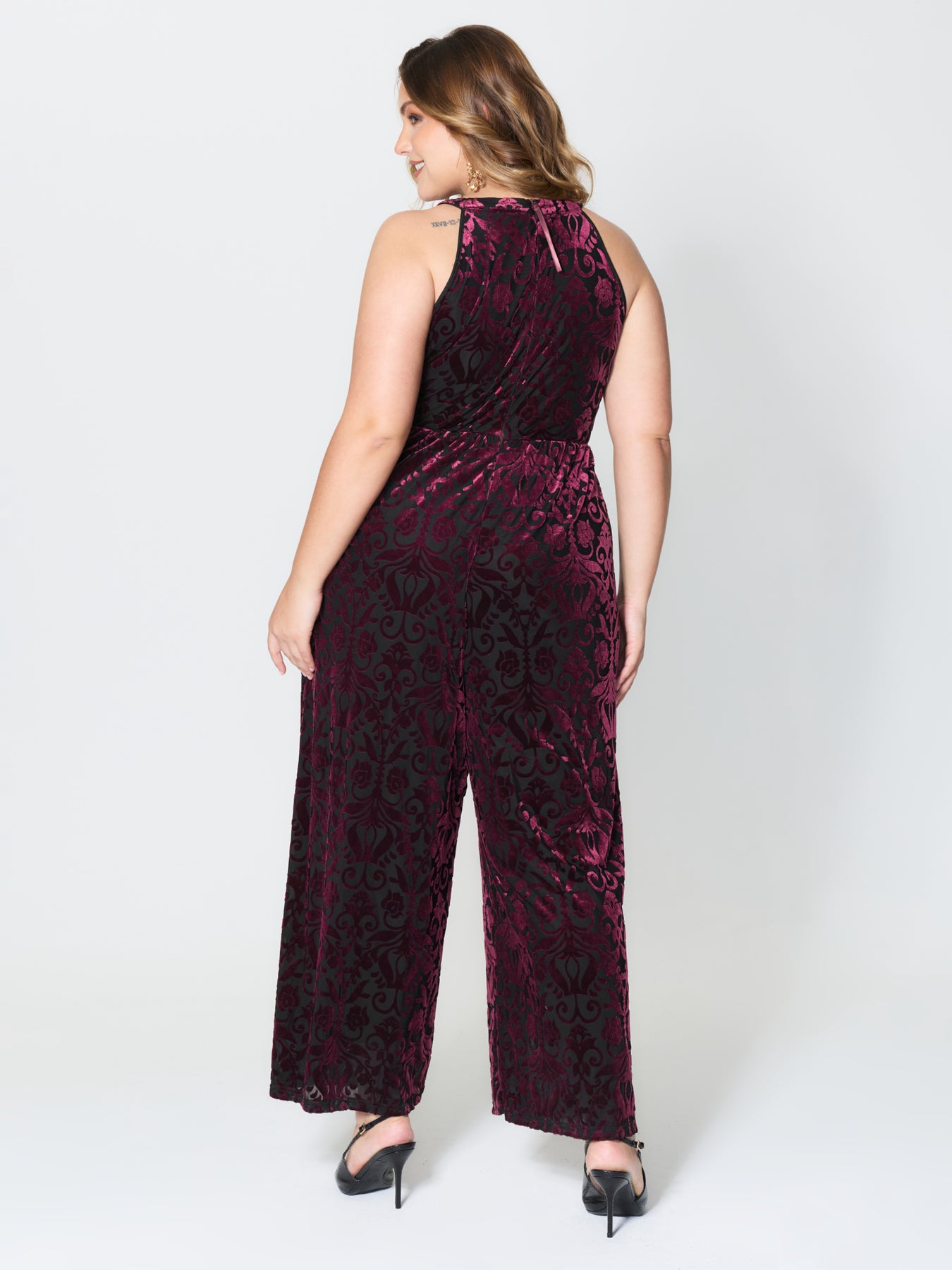 Velvet Laser Cut Lined Wide-Leg Jumpsuit