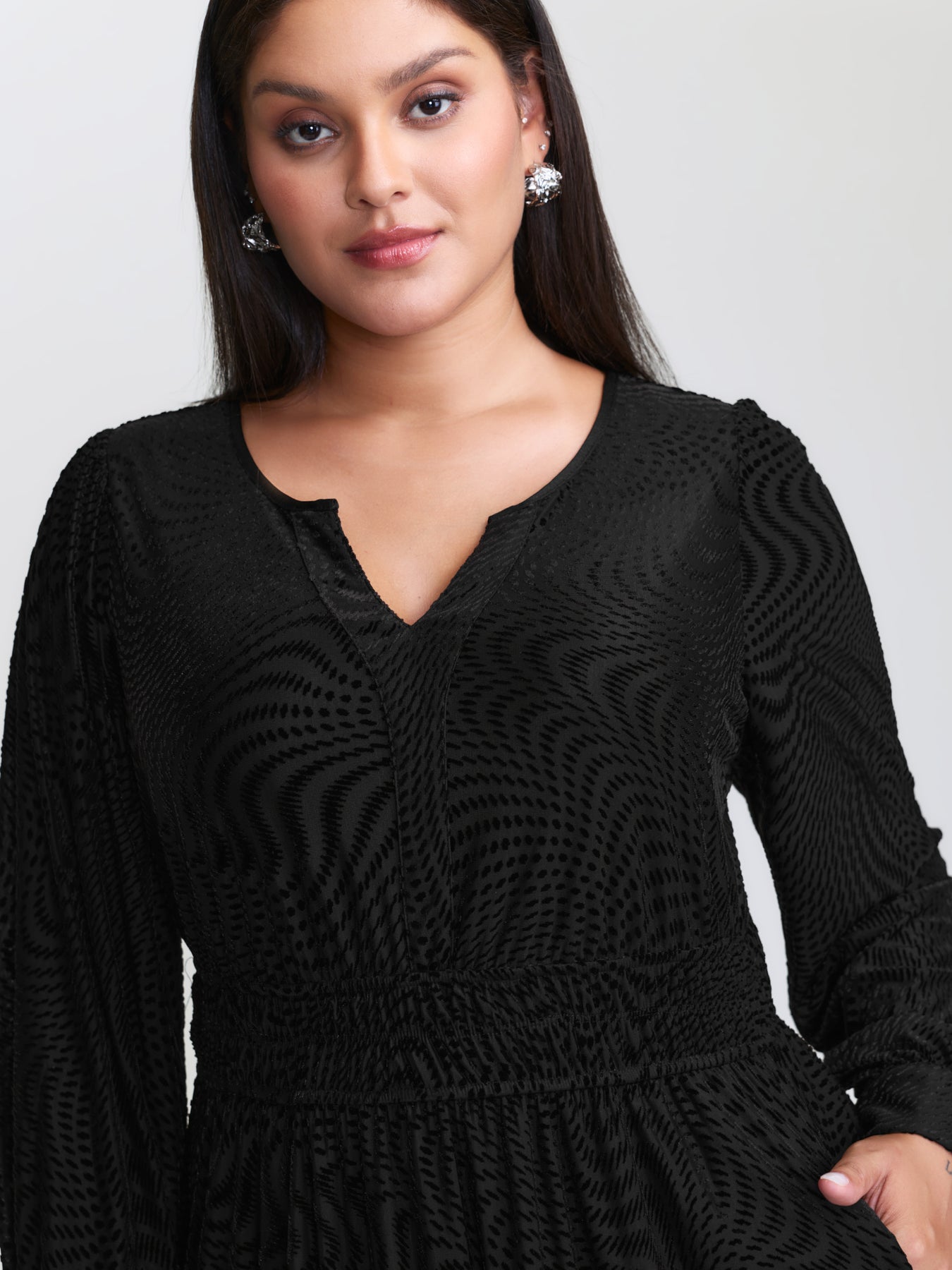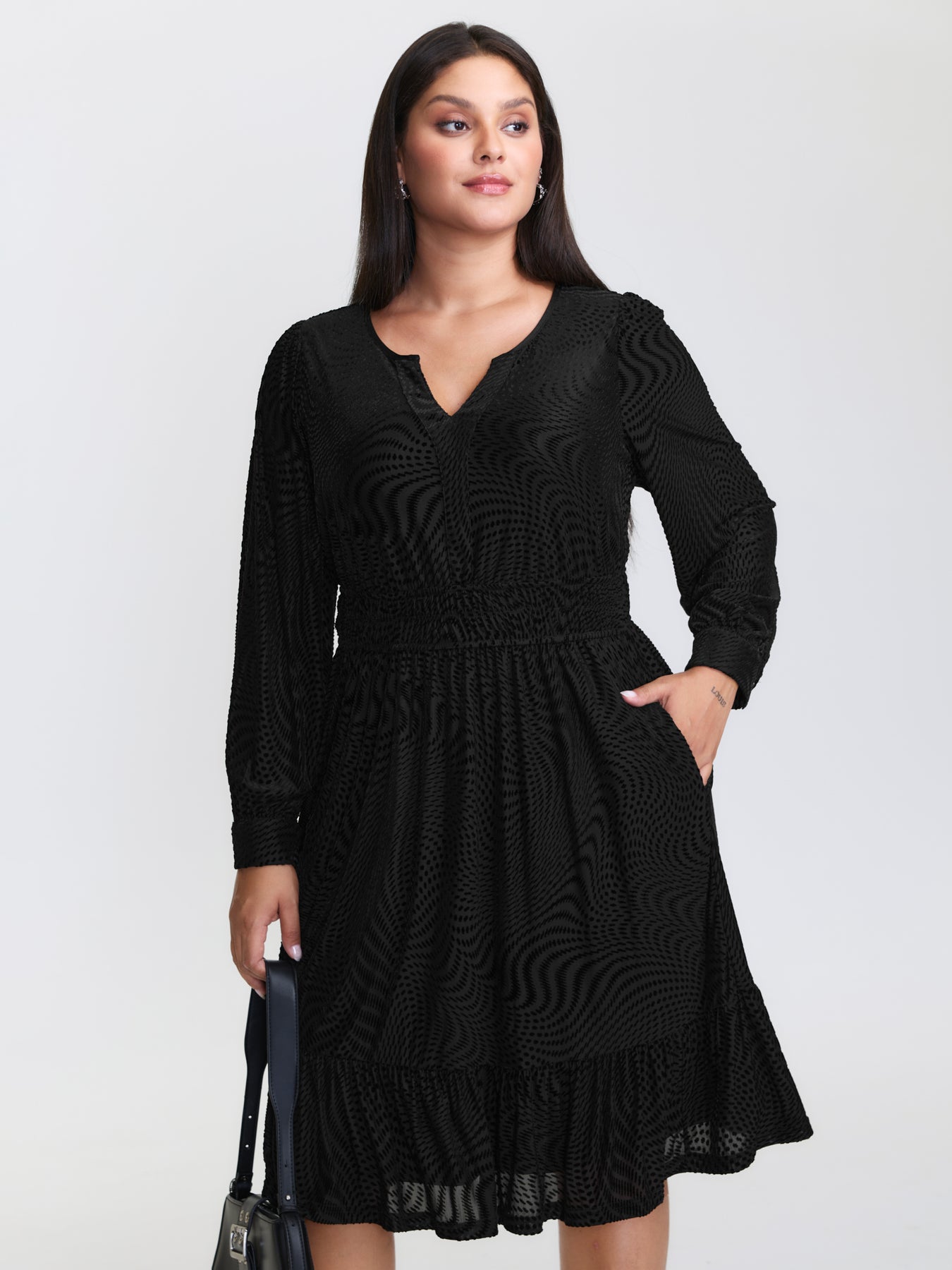 Velvet Laser Cut Ruffled Hem Midi Dress