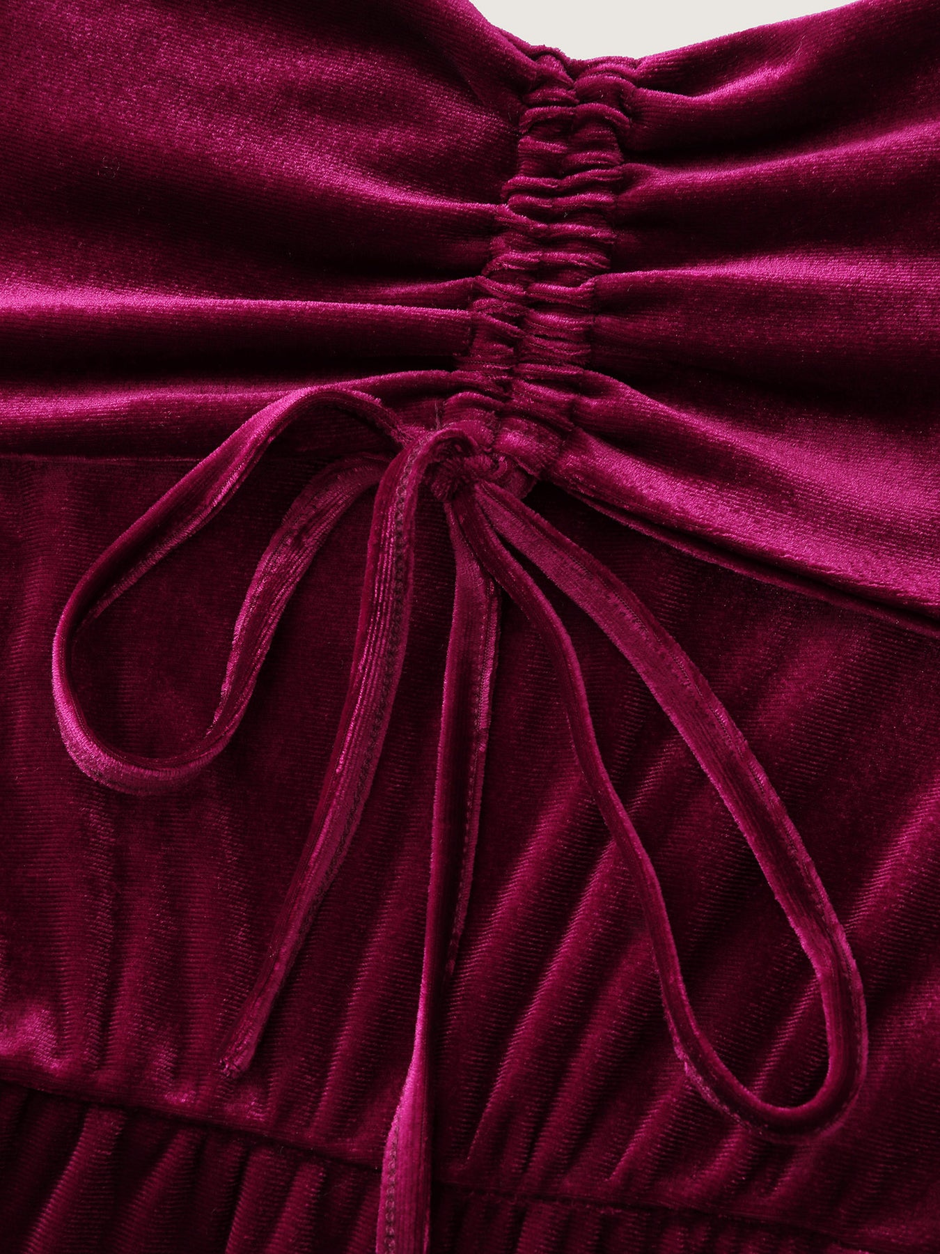 Velvet Off-Shoulder Bow Pockets Midi Dress