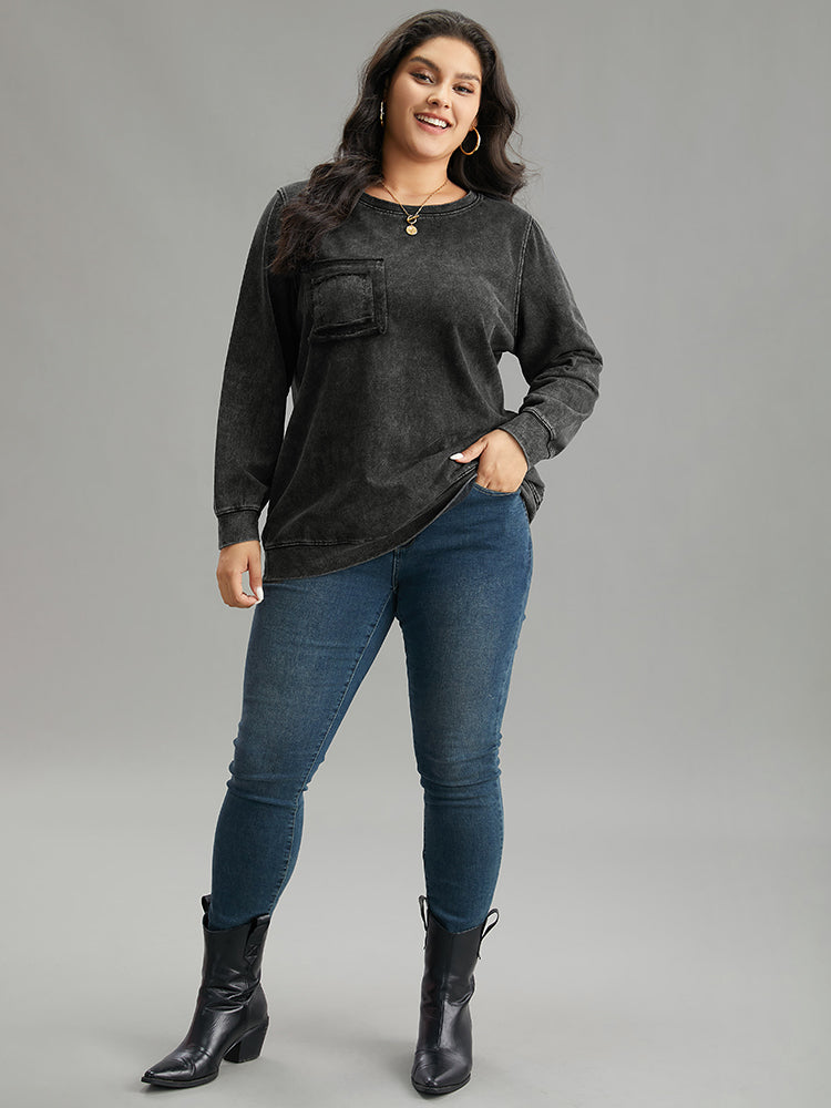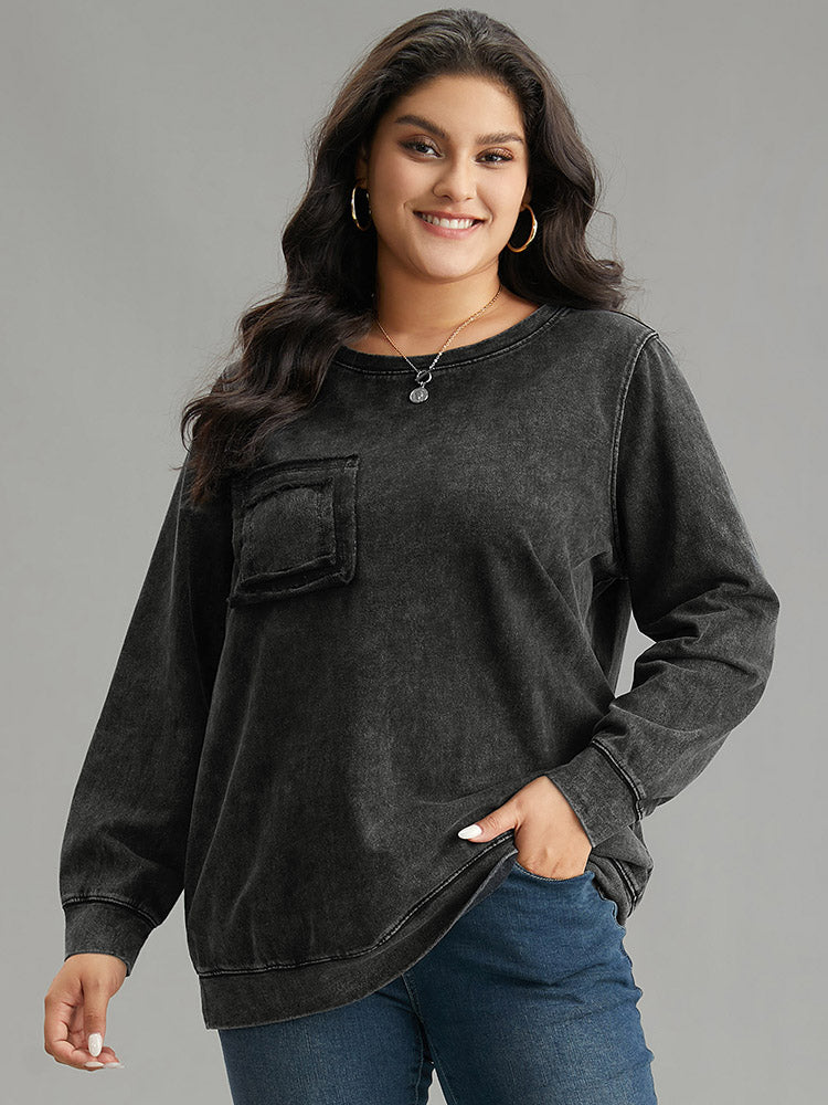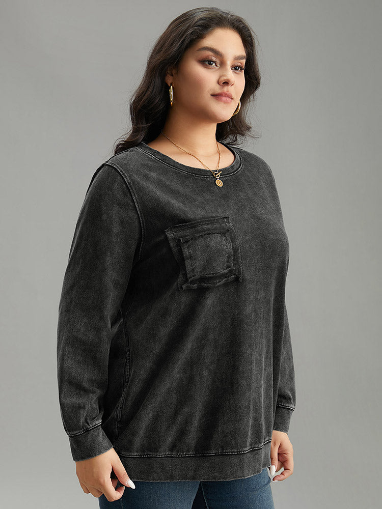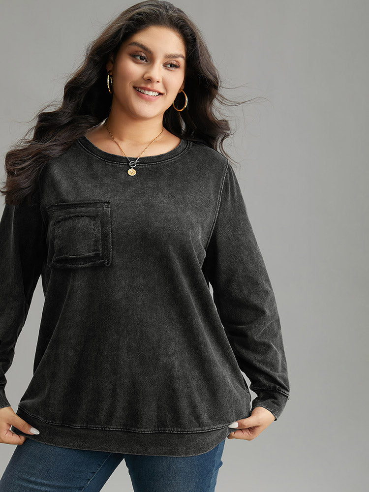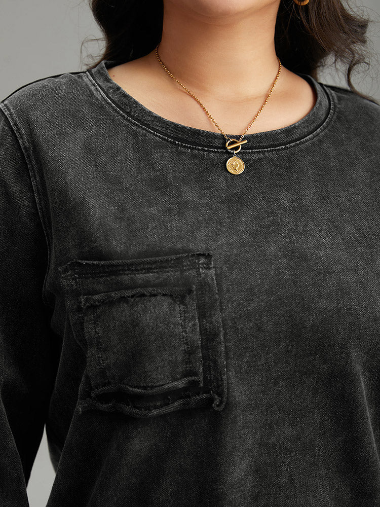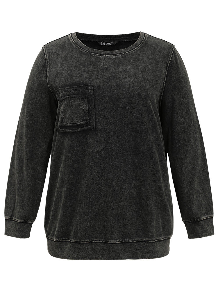 Vintage Patched Pocket Round Neck Sweatshirt