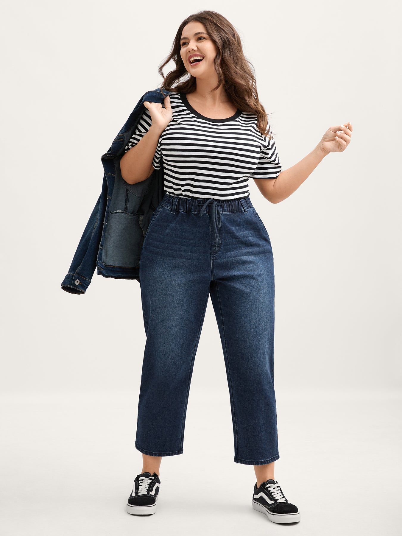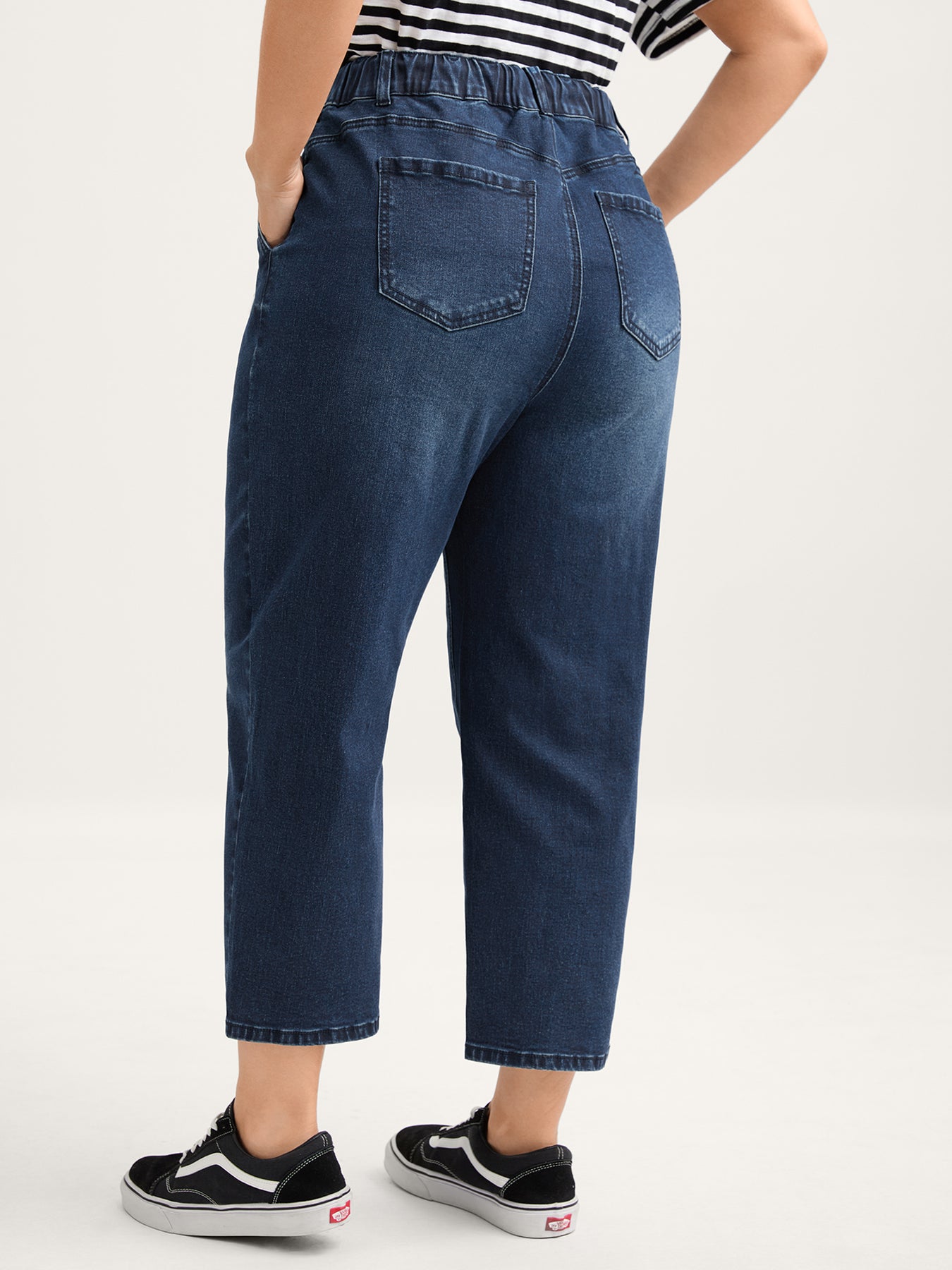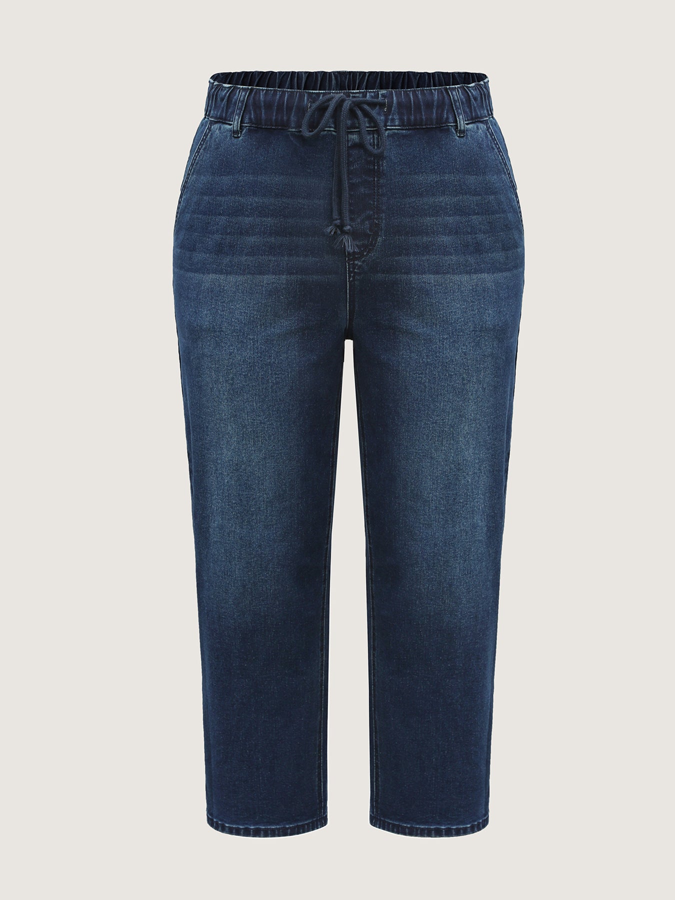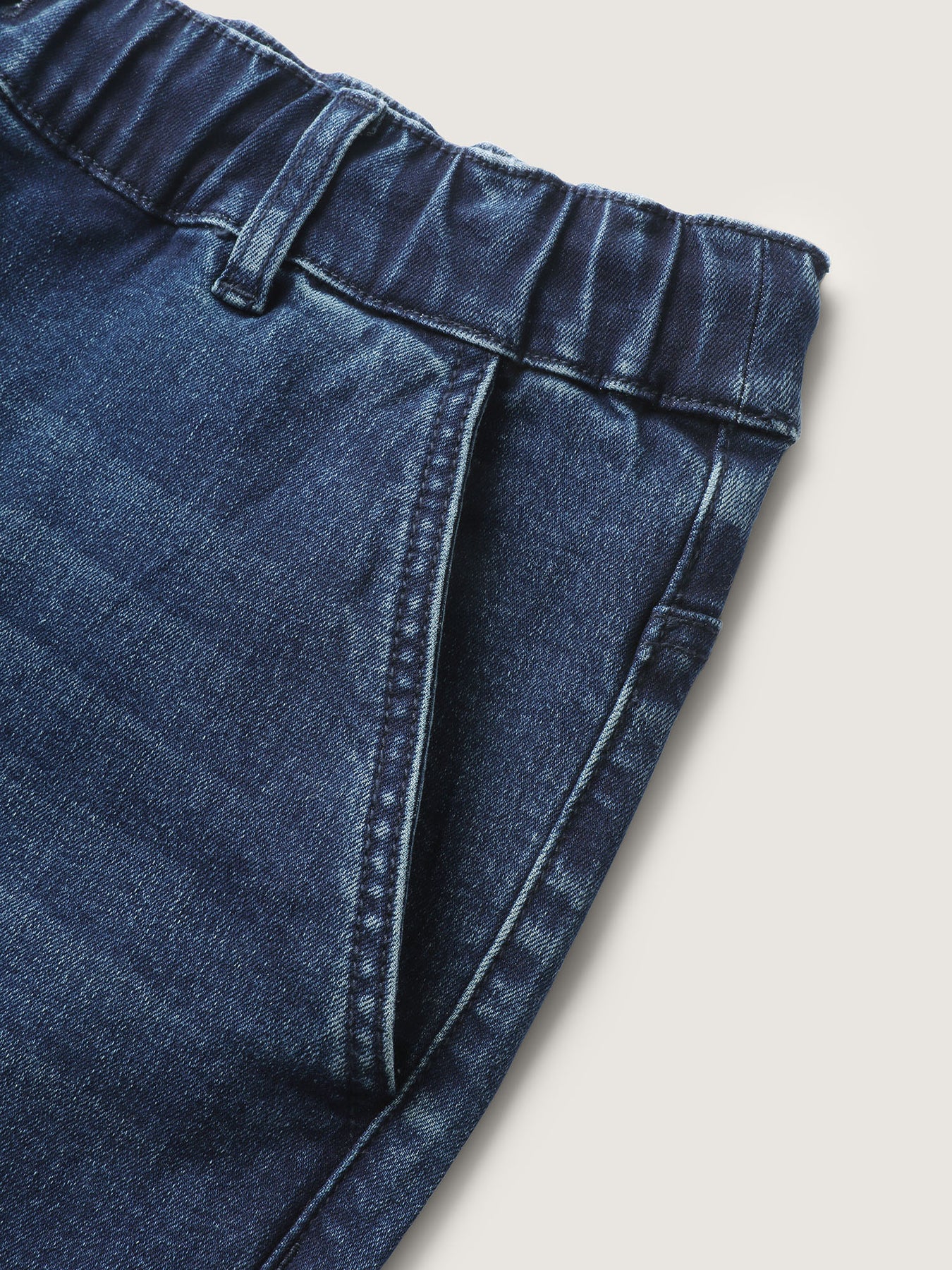 Vintage Wash Rubber Waist Straight-Leg Jeans