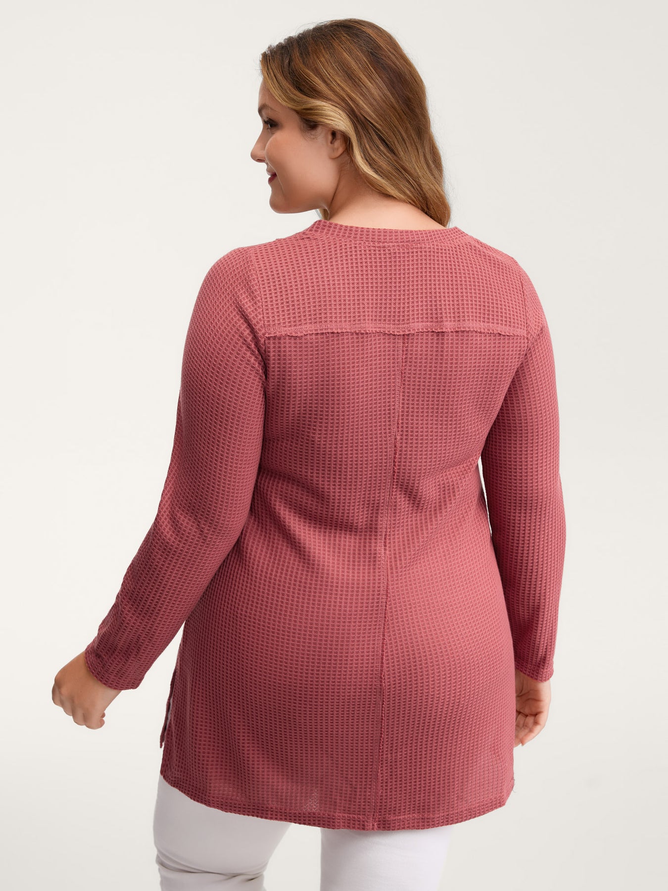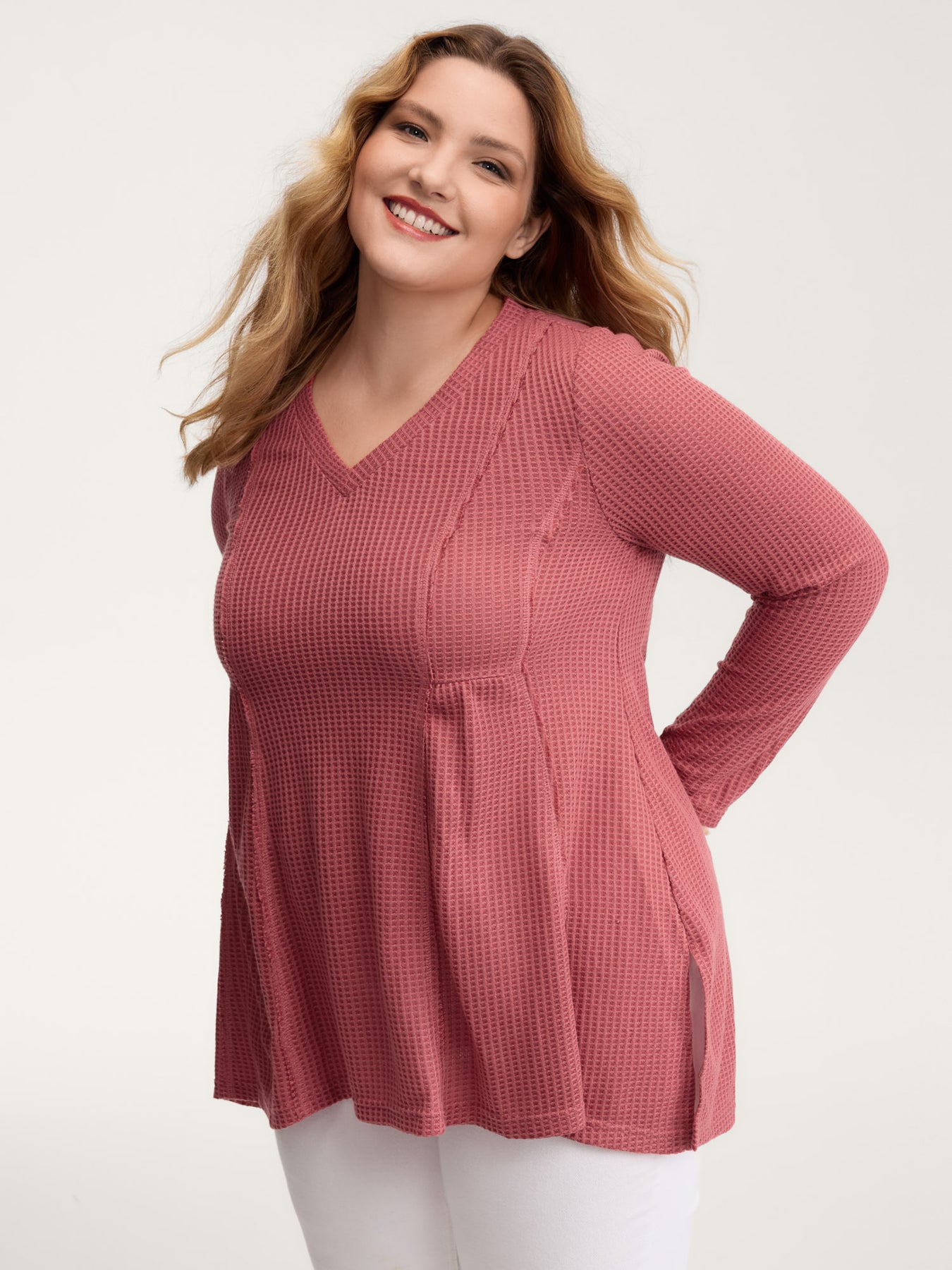 Waffle Grid Side Slit Flared T-Shirt