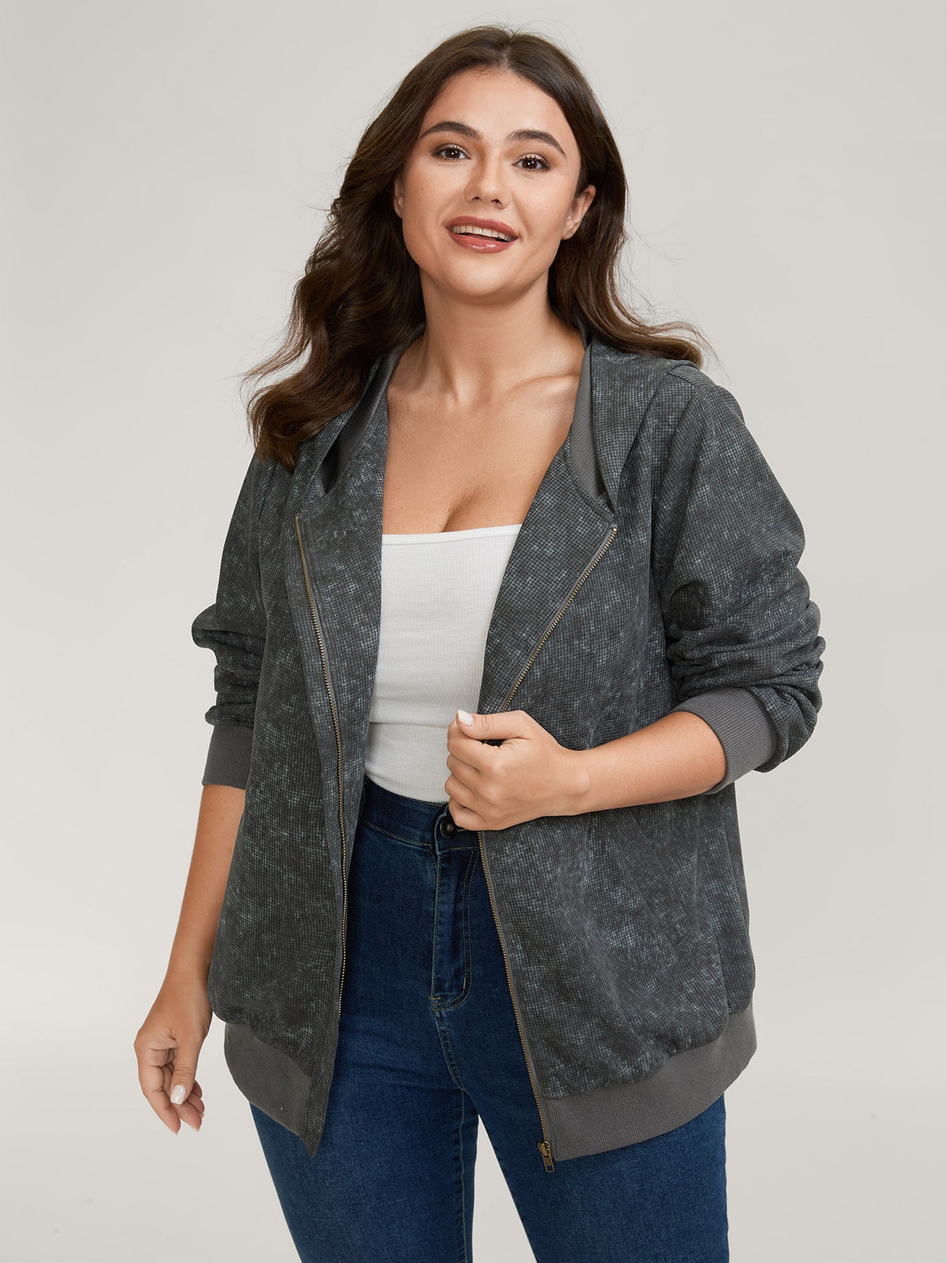 Waffle Texture Solid Zipper Hoodie