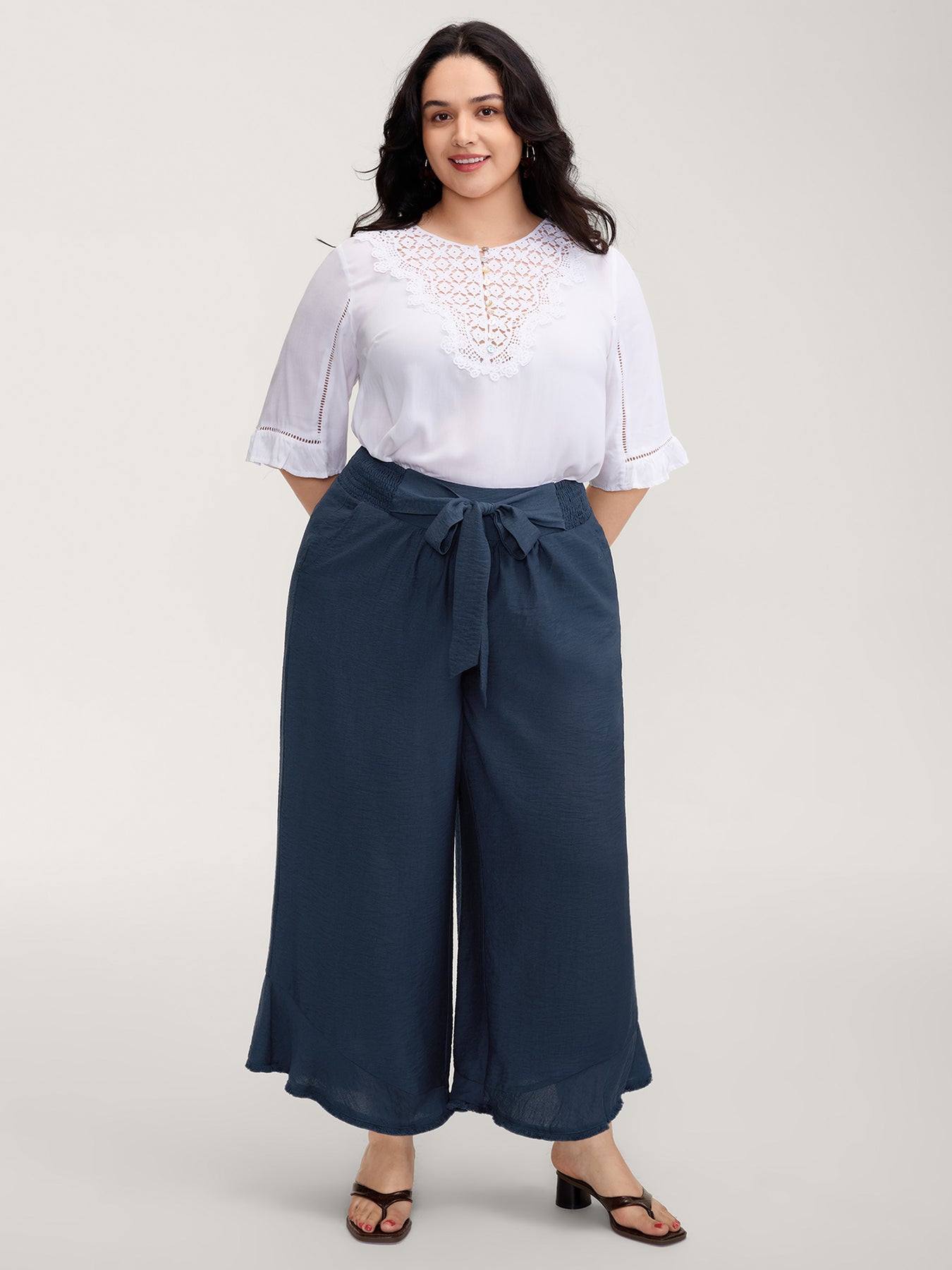 Waist-Tie Knotted Ruffled Wide-Leg Pants