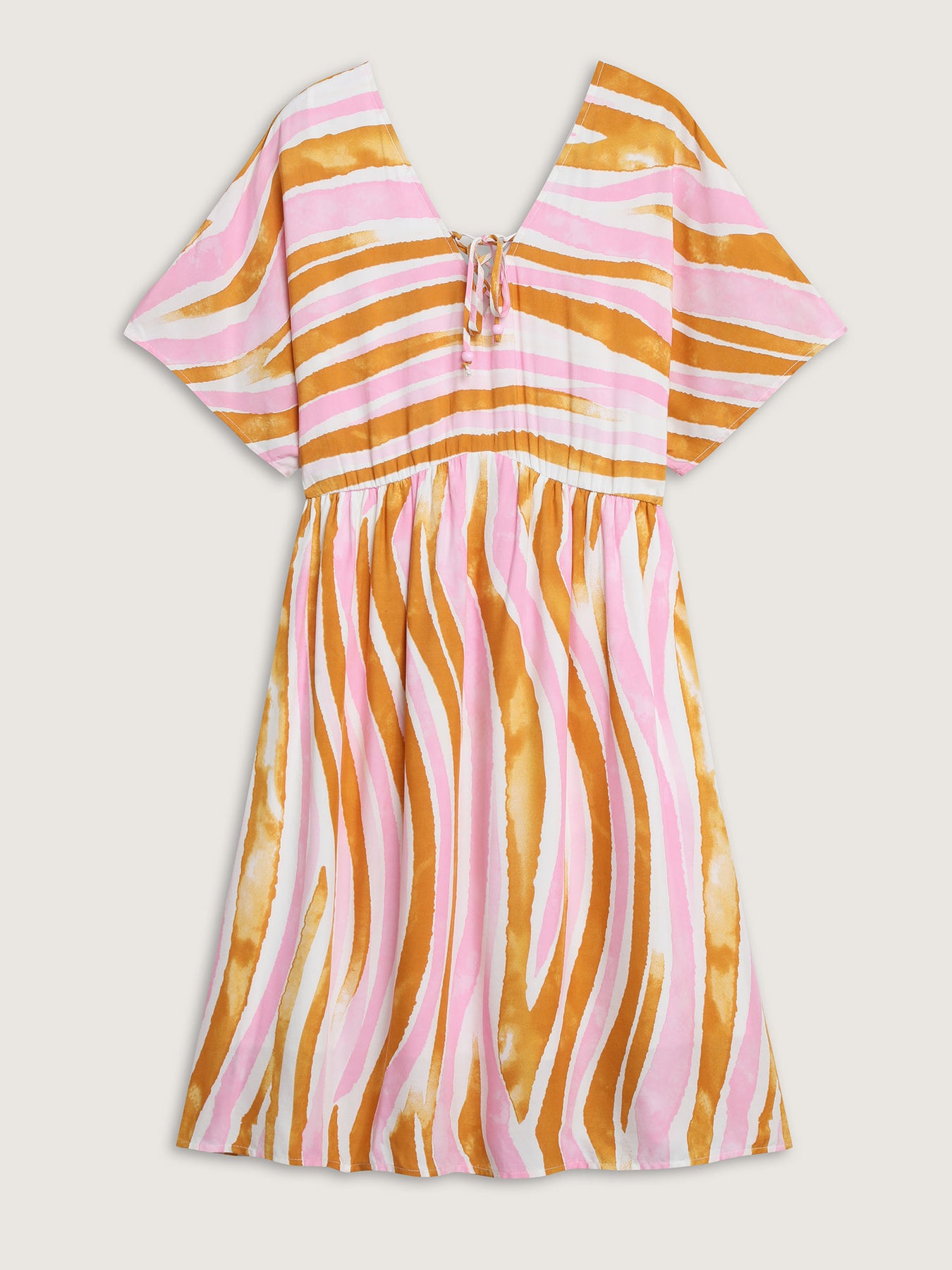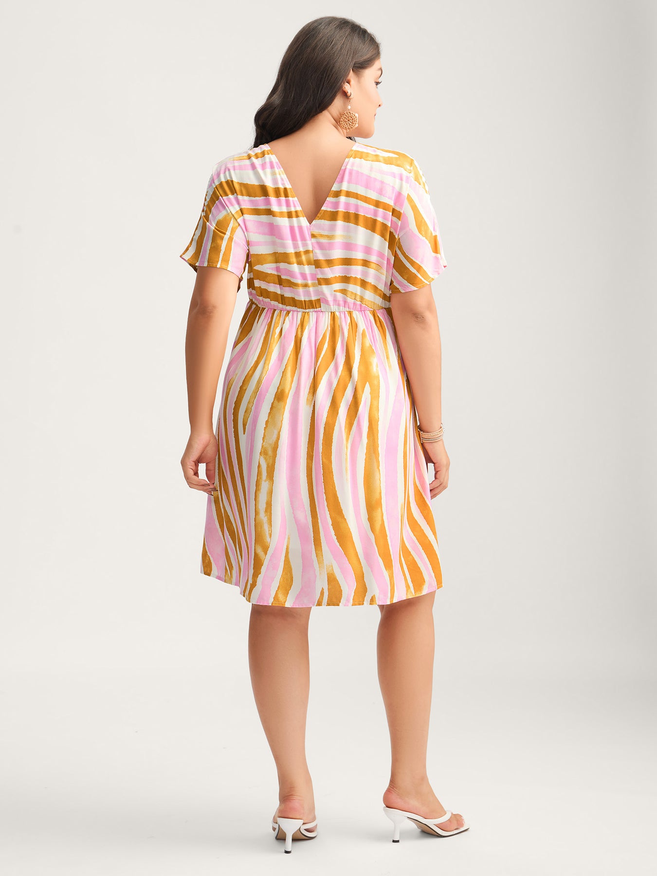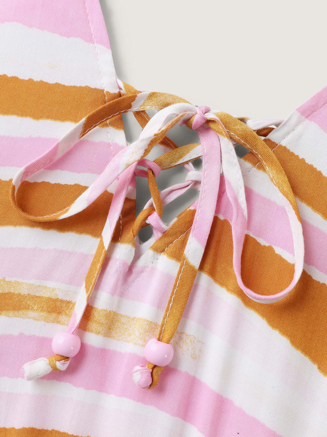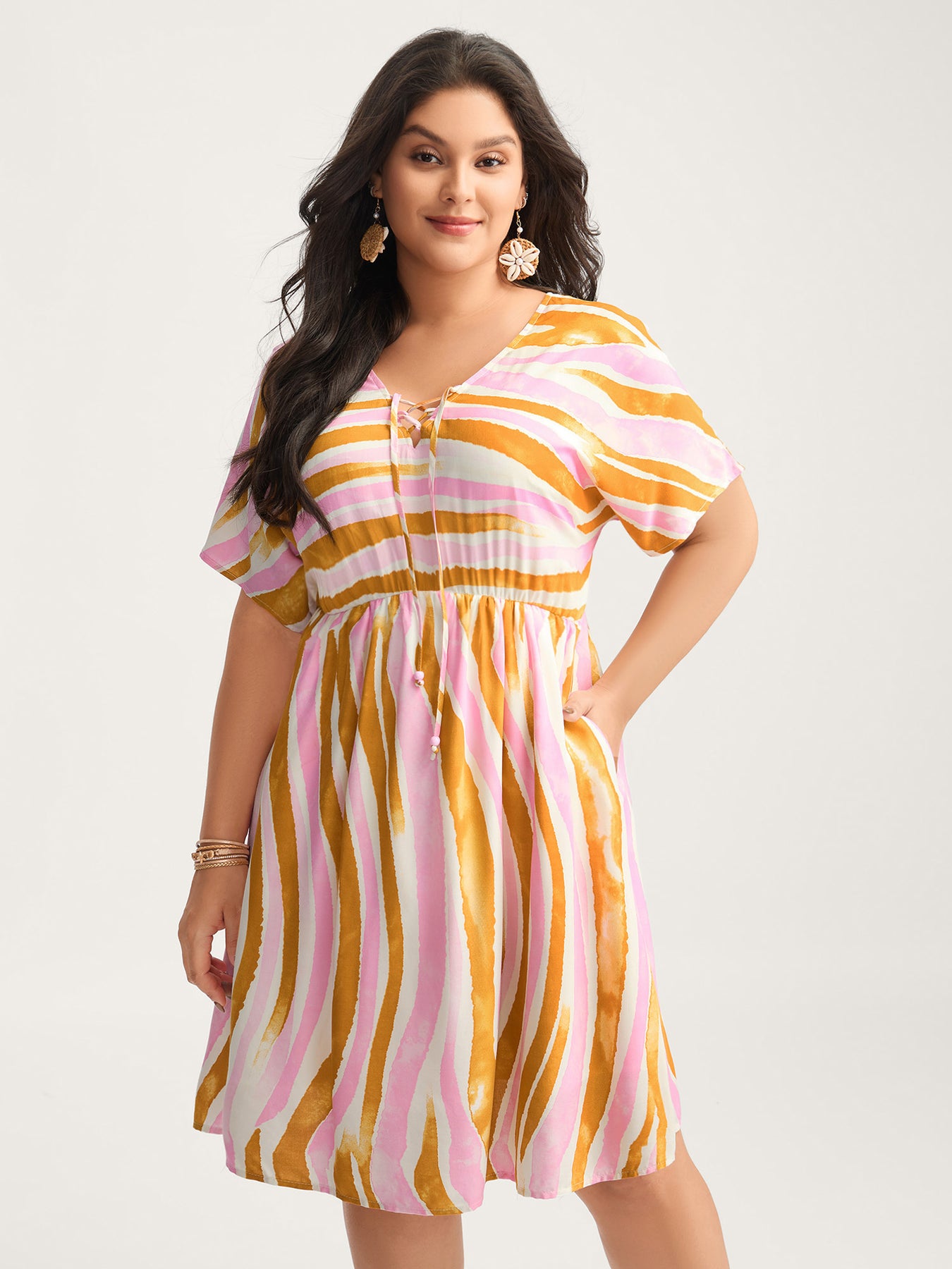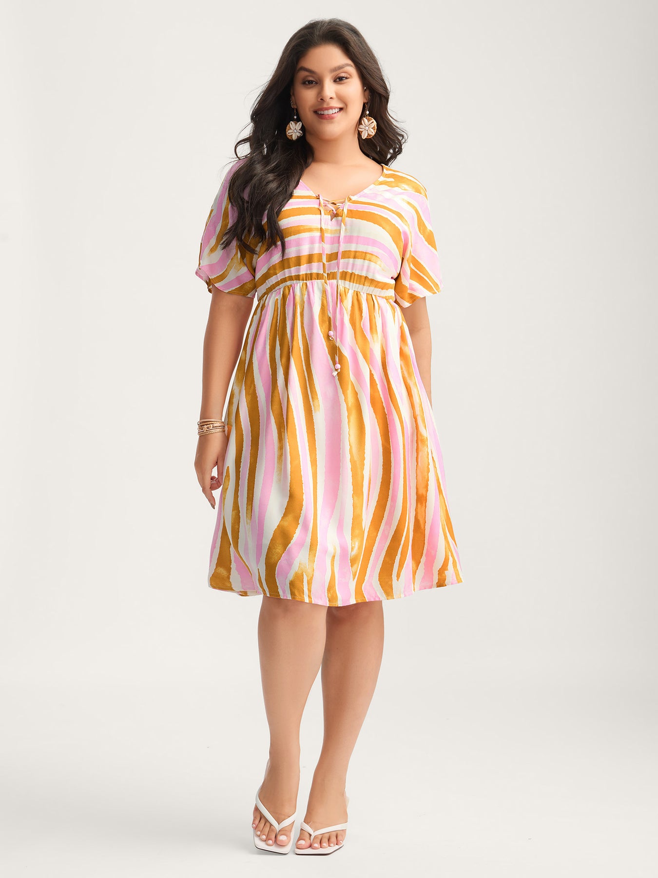 Wavy Stripes Neck Tie Tiered Midi Dress