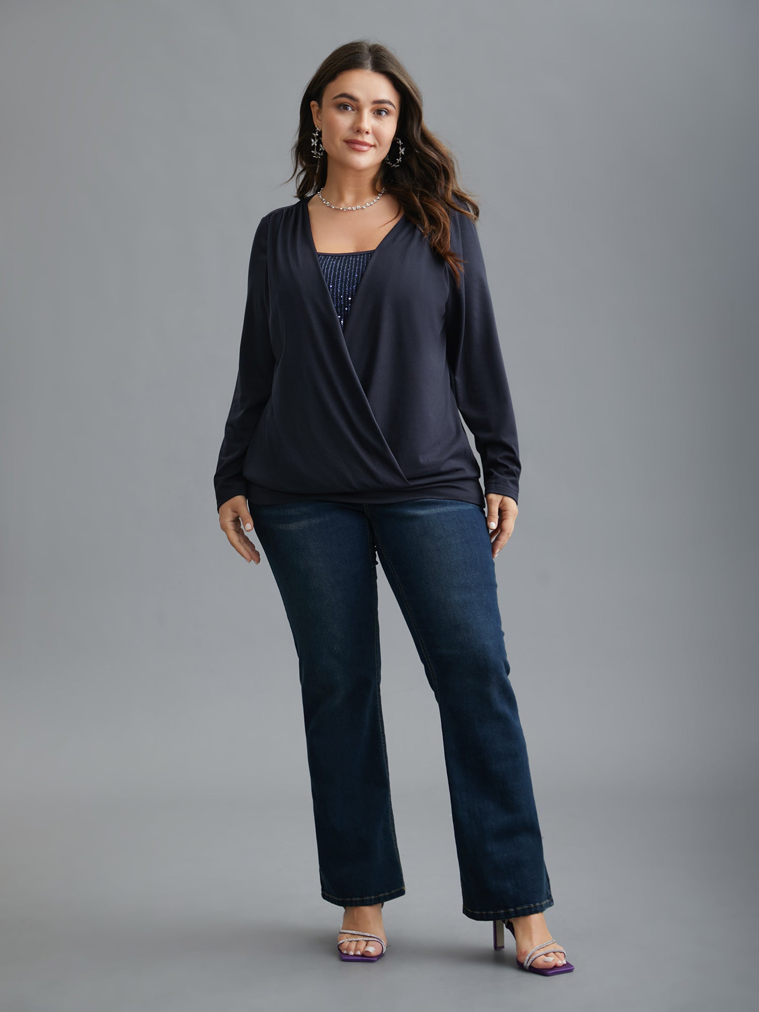 Wrap Design Sequin Knit Top