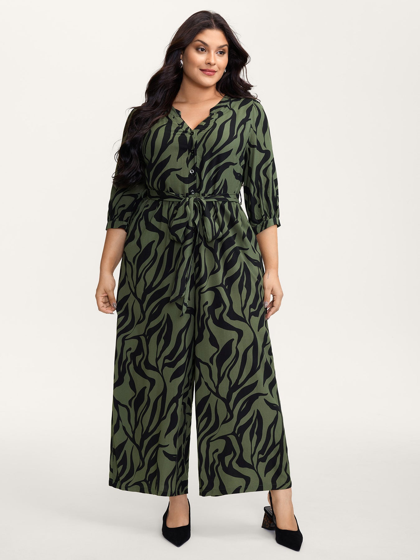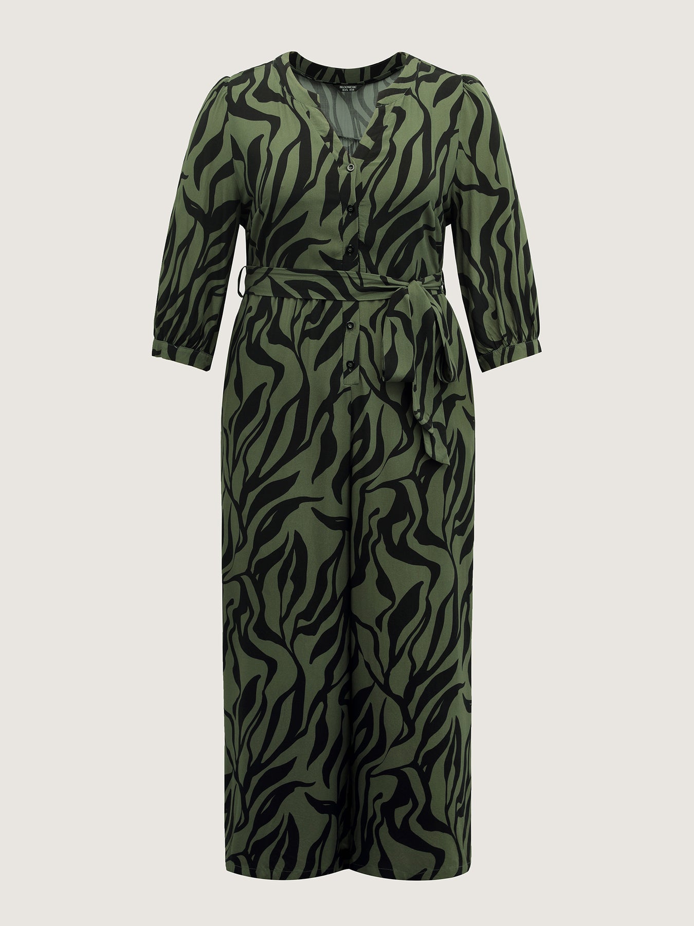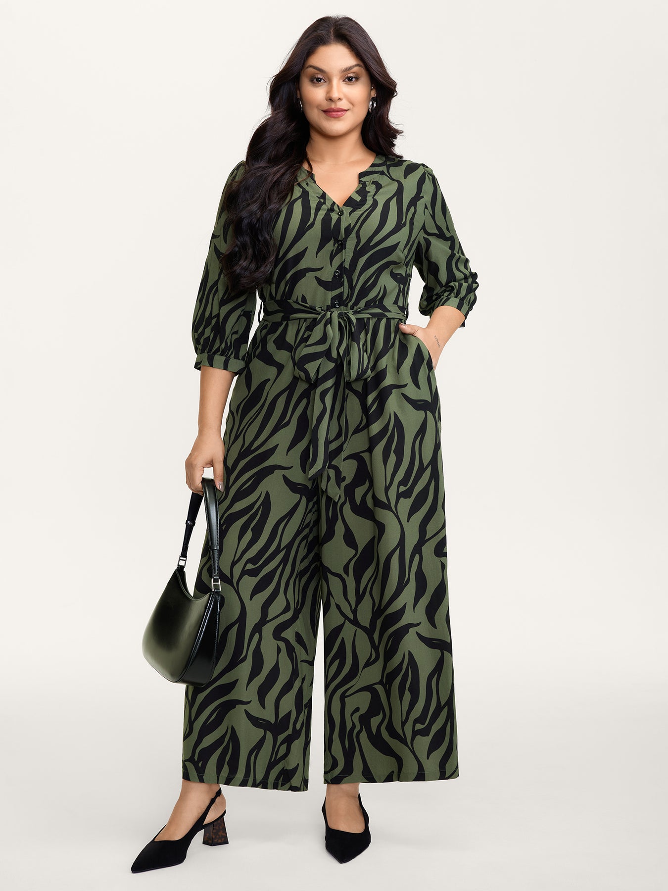 Zebra Print Stretchy Belted Waist Jumpsuit